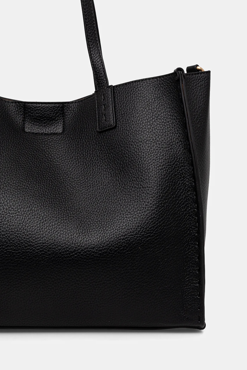 - Zapięcie typu twist-lock. - Posiada uchwyty i odpinany pasek z regulacją. - Mieści format A4. - Model bez podszewki. - Długość minimalna paska: 102 cm. - Długość maksymalna paska: 116 cm. - Długość uchwytów: 58 cm. - Głębokość: 13 cm. - Wysokość: 32 cm. - Szerokość u podstawy: 40 cm.