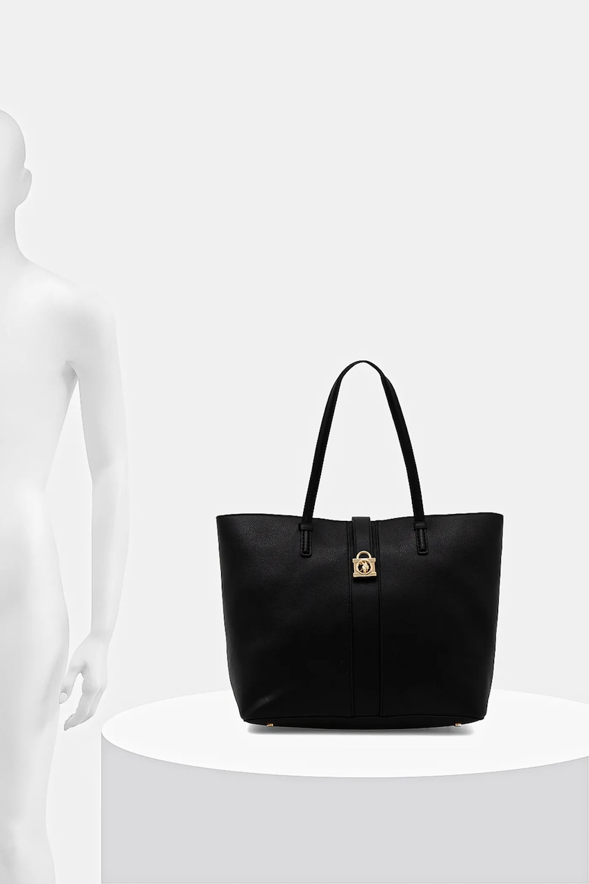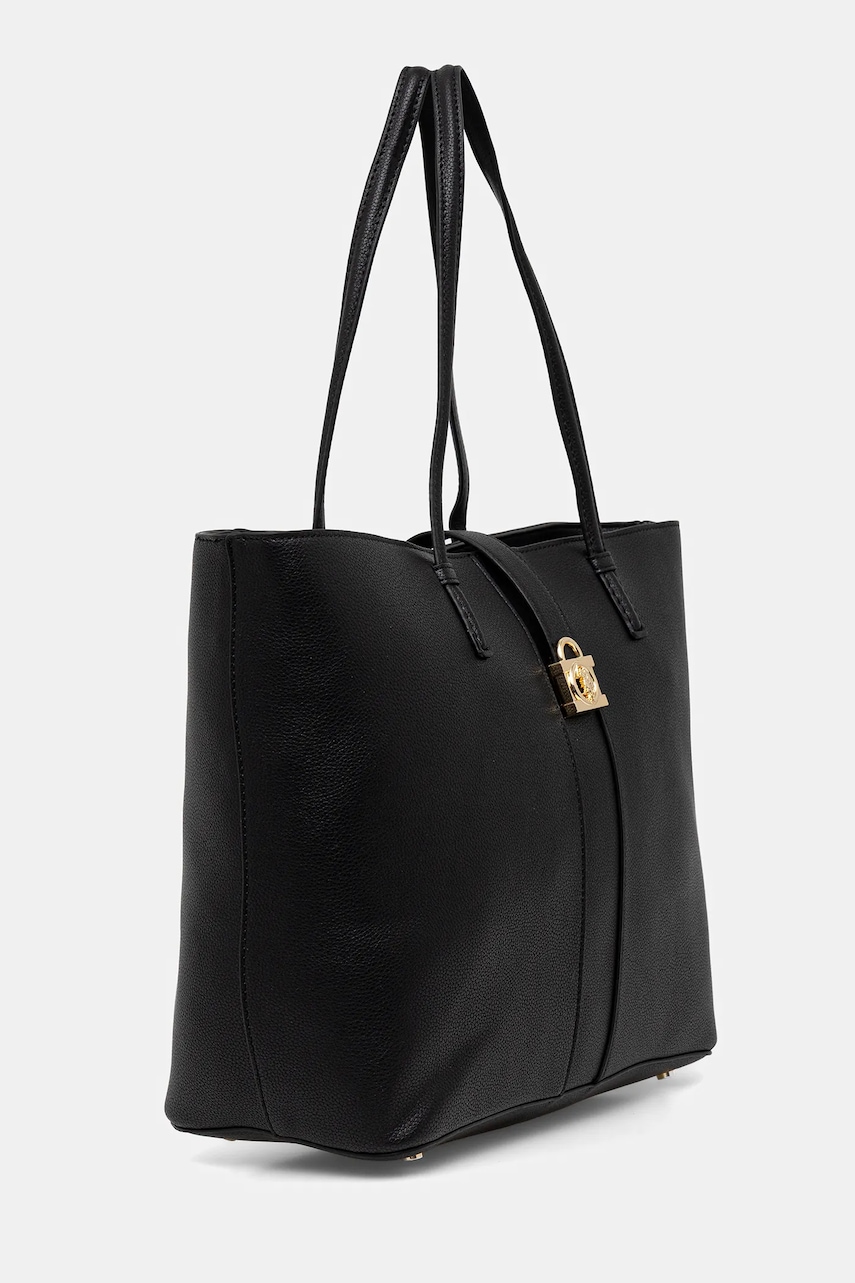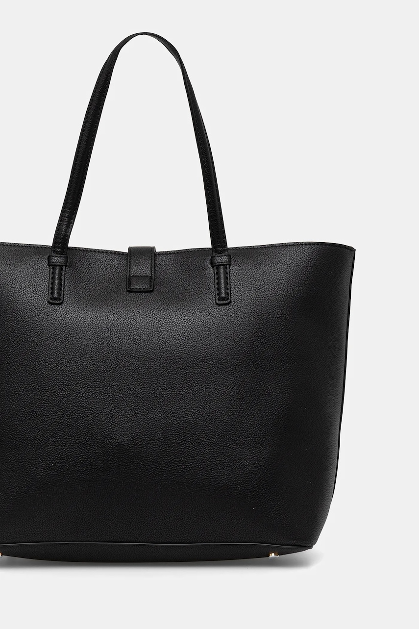 - Zapięcie na suwak i magnes. - Długie uchwyty dla komfortowego noszenia w dłoni lub na ramieniu. - Mieści format A4. - Model bez podszewki. - Model wyposażony w metalowe nóżki, które zabezpieczają spód torebki. - Z tyłu dwie kieszenie: jedna wsuwana, druga zapinana na suwak. - Długość uchwytów: 55 cm. - Głębokość: 15 cm. - Wysokość: 29 cm. - Szerokość u podstawy: 34 cm.