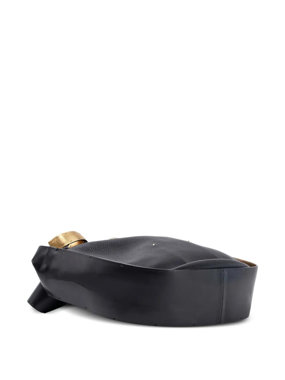 black knot detail gold-tone hardware top zip fastening two studs top handle
