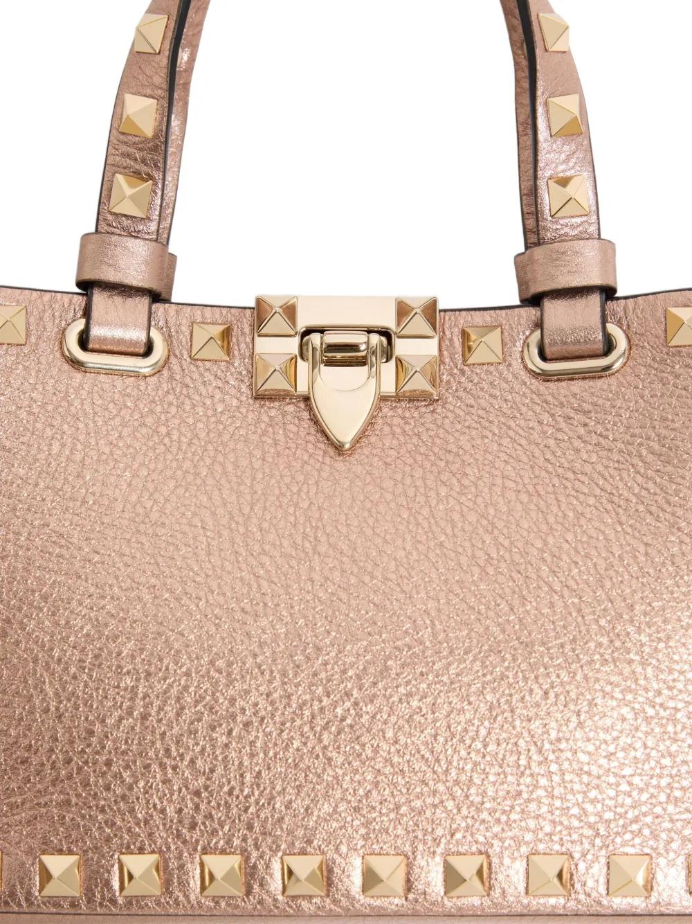light brown laminated effect grained texture gold-tone Rockstuds handles removable chain strap