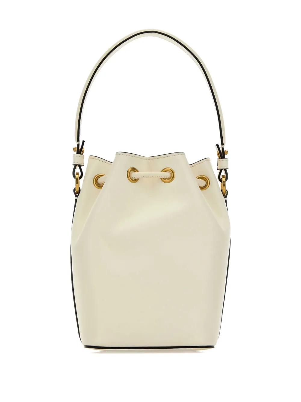 beige leather gold-tone hardware top handle drawstring fastening vlogo detail black piping