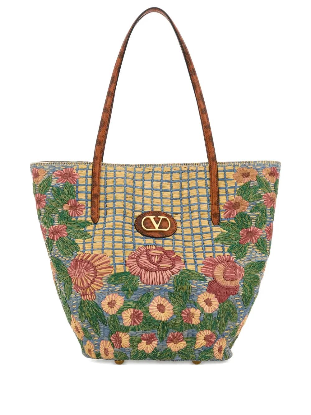Valentino Garavani raffia signature-logo tote bag - Blue