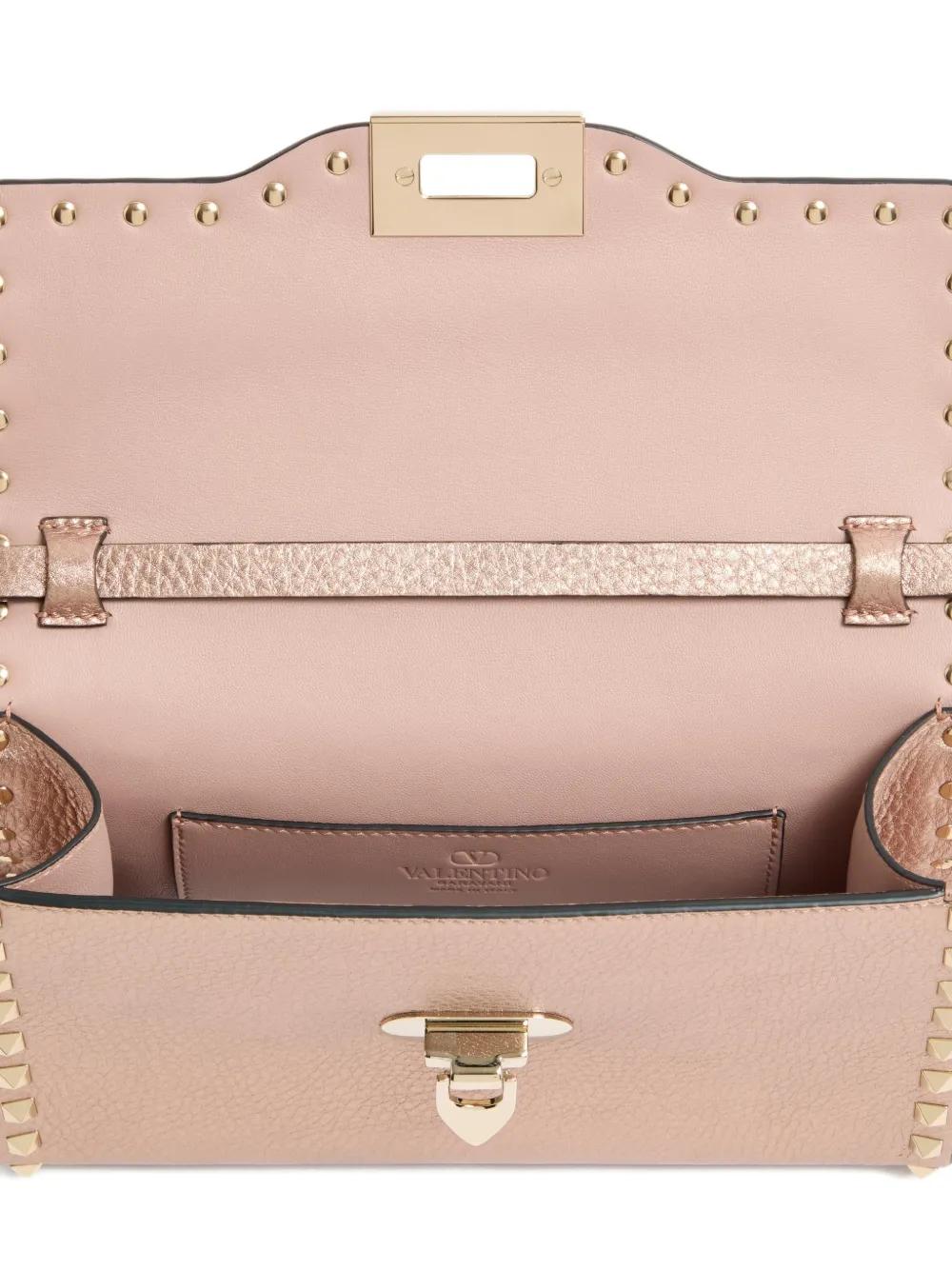 light pink leather Rockstud embellishment adjustable shoulder strap hook fastening internal slip pocket
