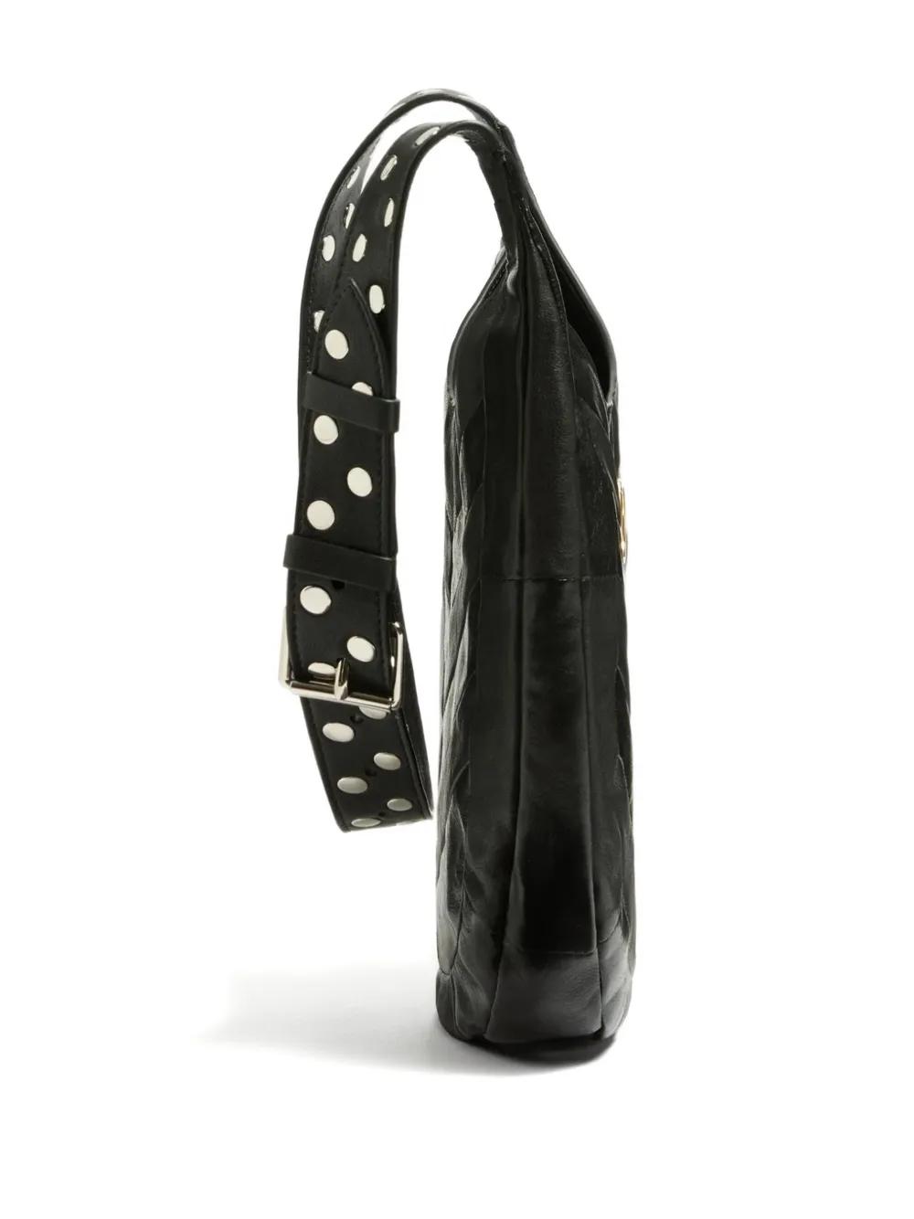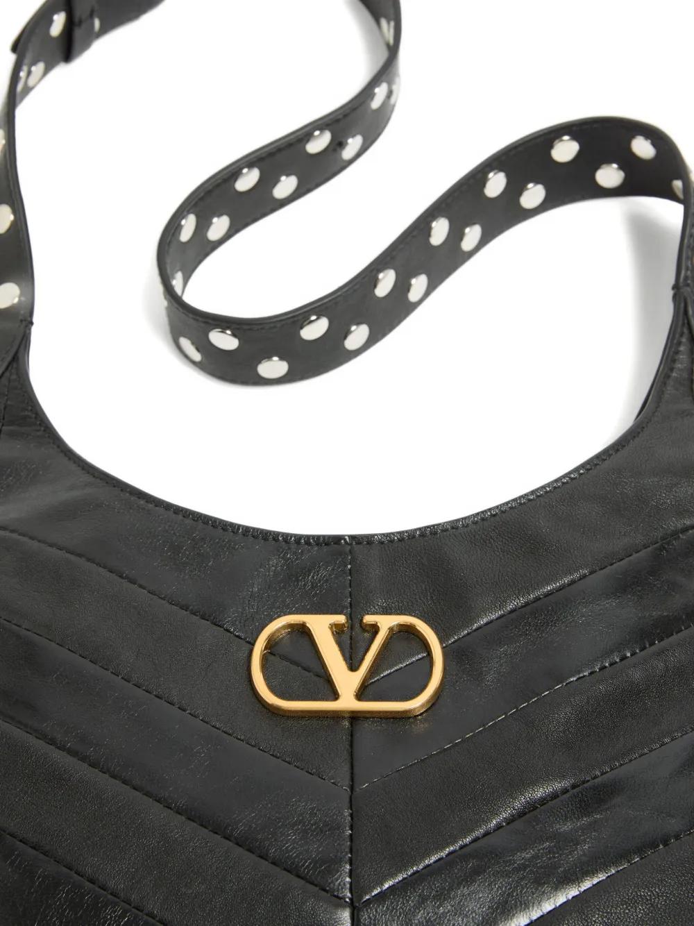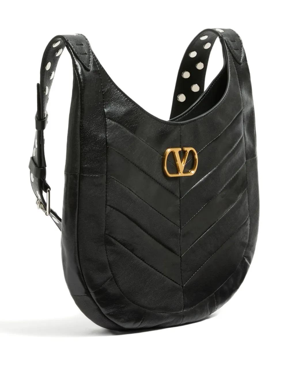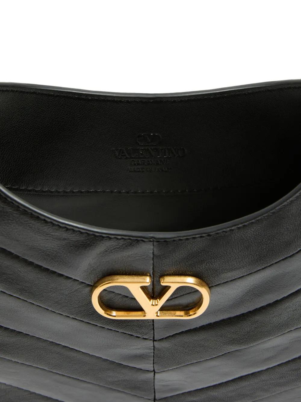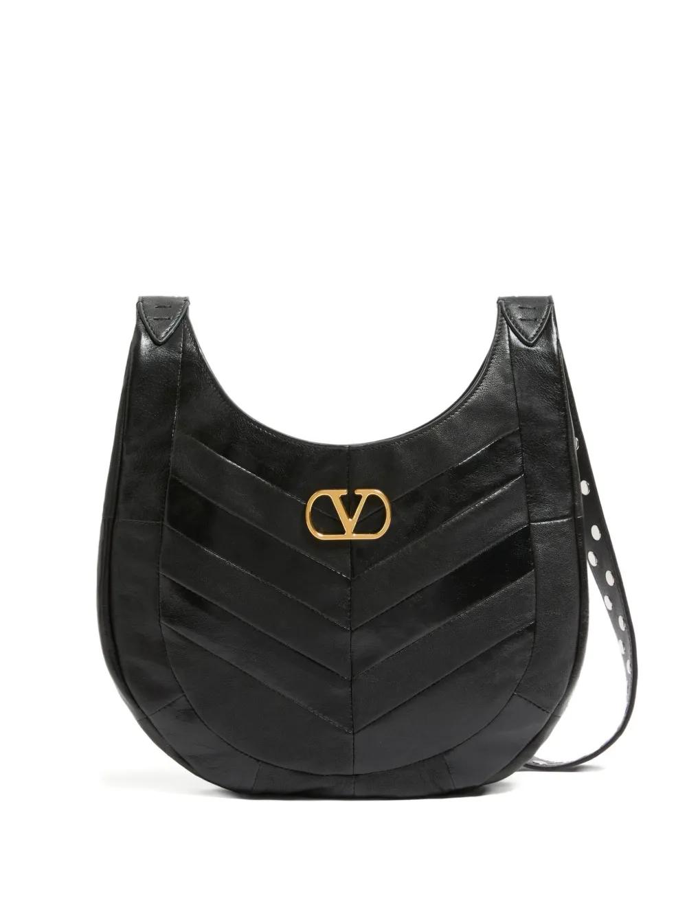 black chevron pattern VLogo Signature plaque adjustable shoulder strap stud detailing leather
