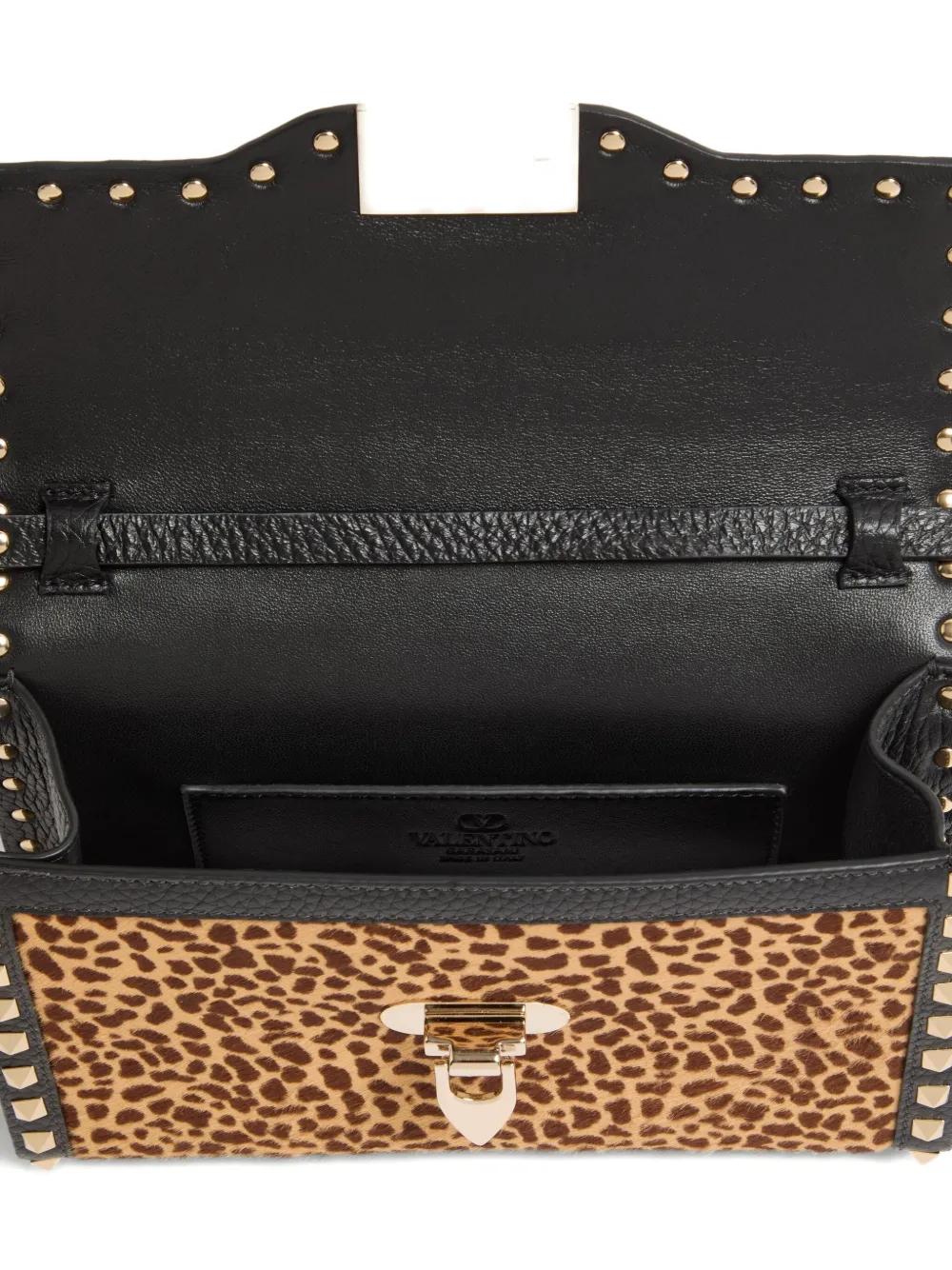 brown all-over animal print Rockstud embellishment leather trim clasp fastening adjustable shoulder strap