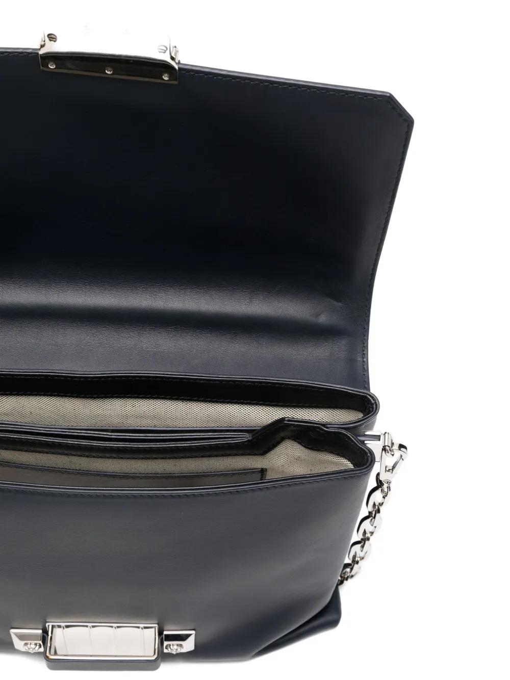 dark blue graphic print chain-link shoulder strap top handle top flap clasp fastening This piece comes complete with a protective dust bag.