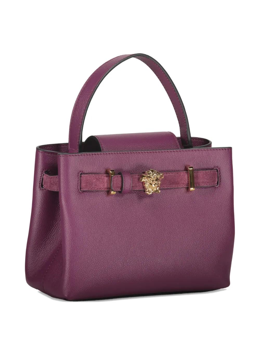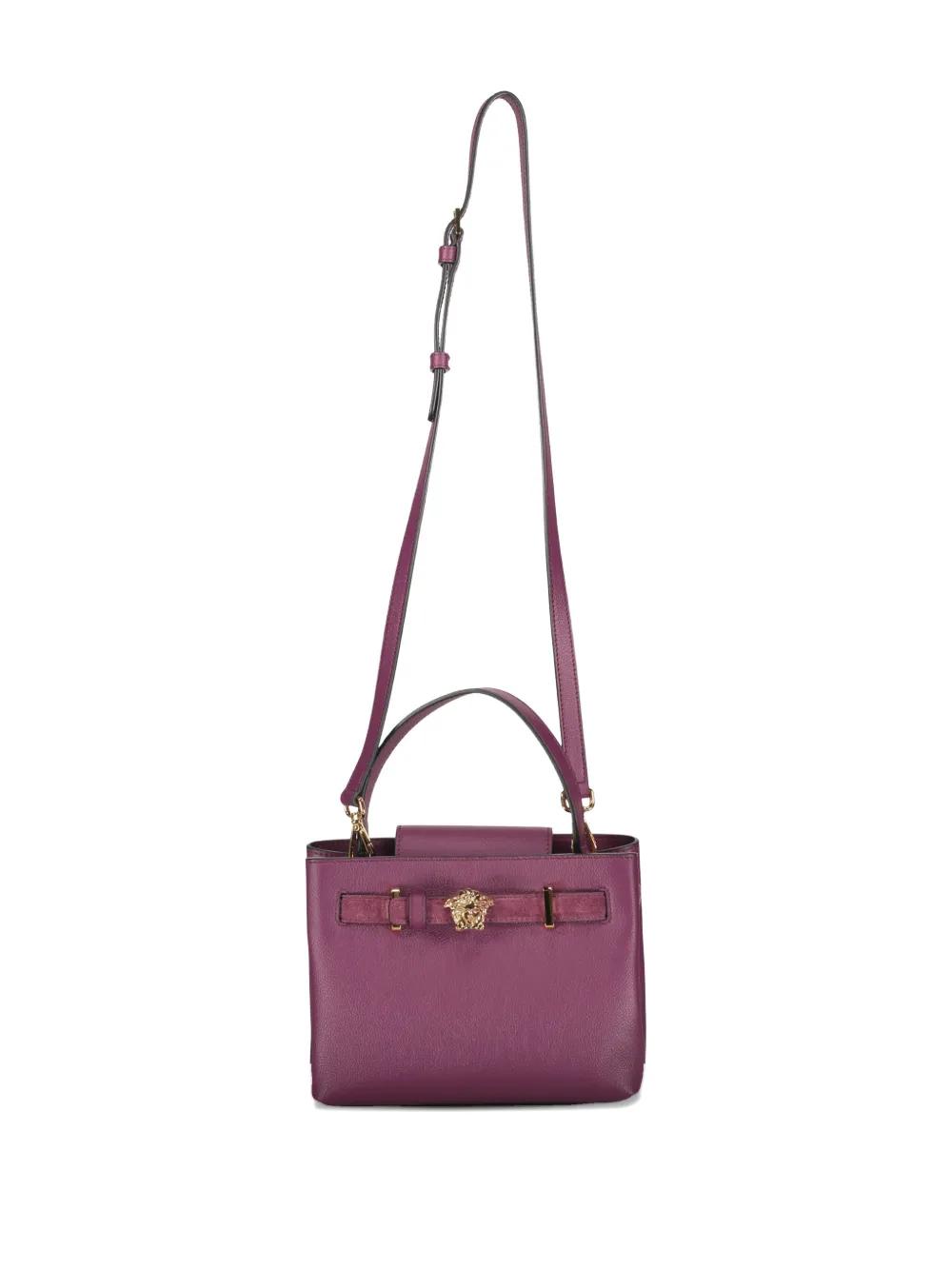 purple top handle detachable shoulder strap Medusa Head embellishment gold-tone hardware