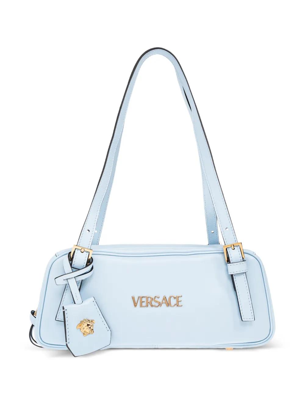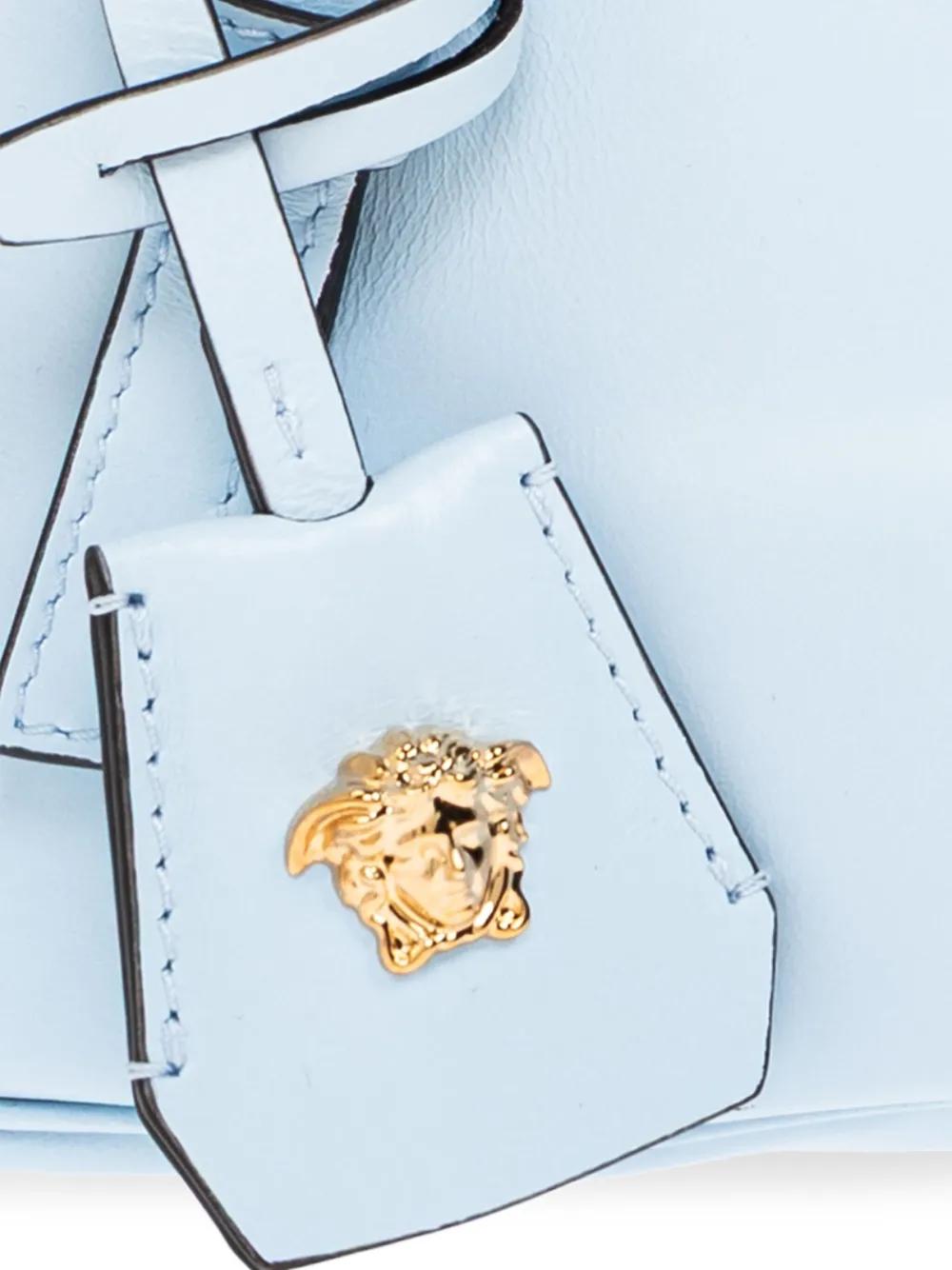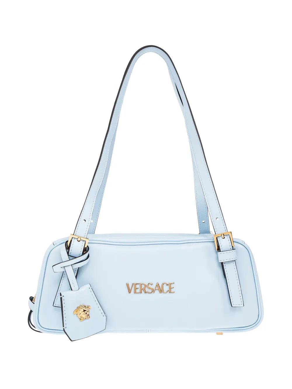light blue Versace logo plaque adjustable shoulder-straps zip fastening gold-tone hardware Medusa hardware