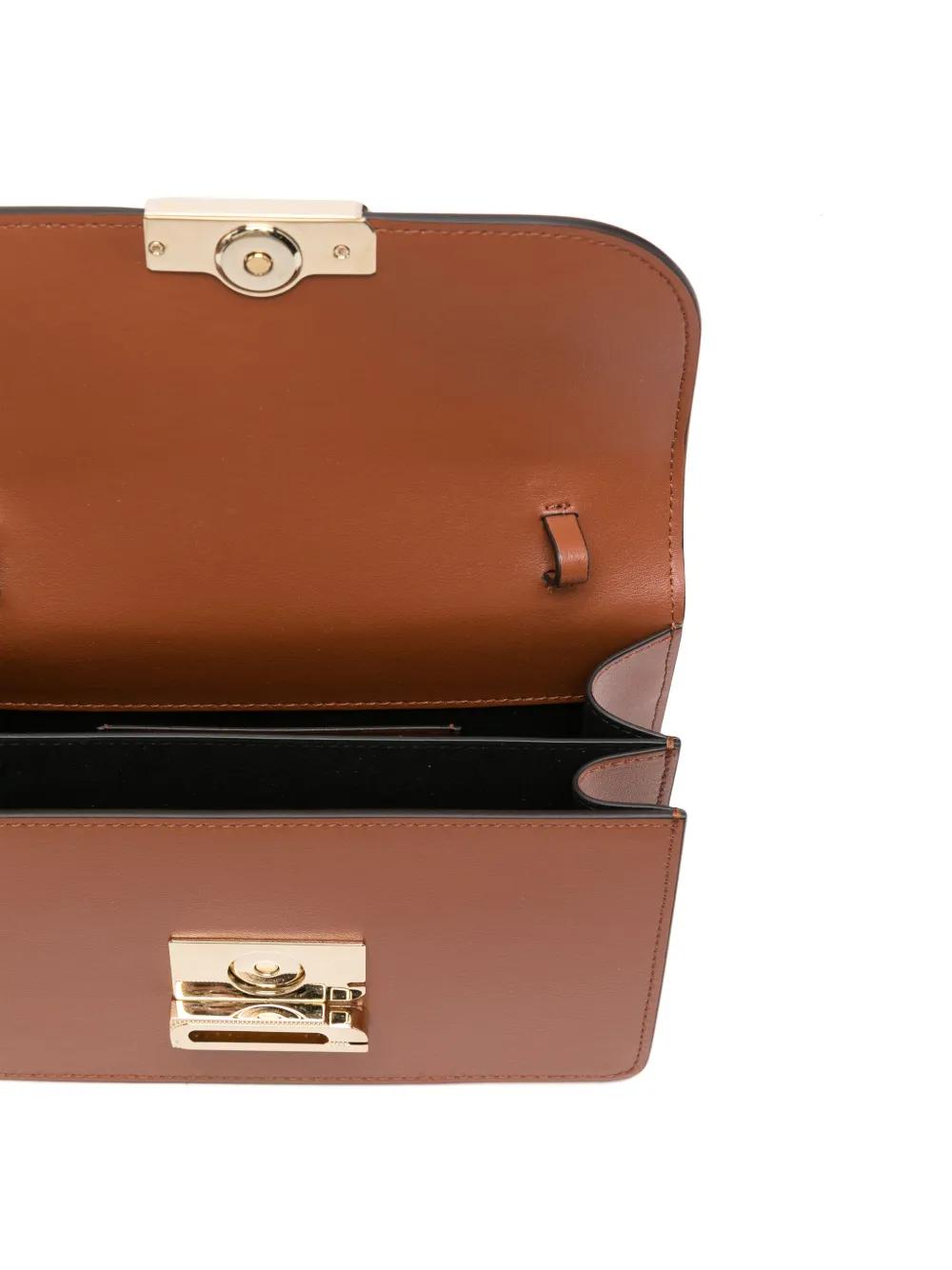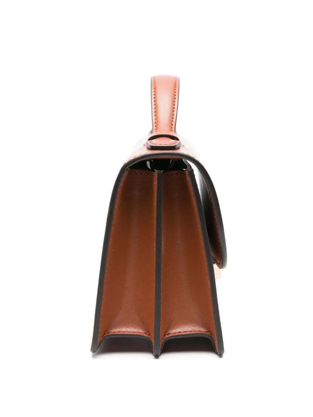 geode brown foldover top with magnetic fastening single top handle adjustable detachable shoulder strap This piece comes complete with a protective dust bag.
