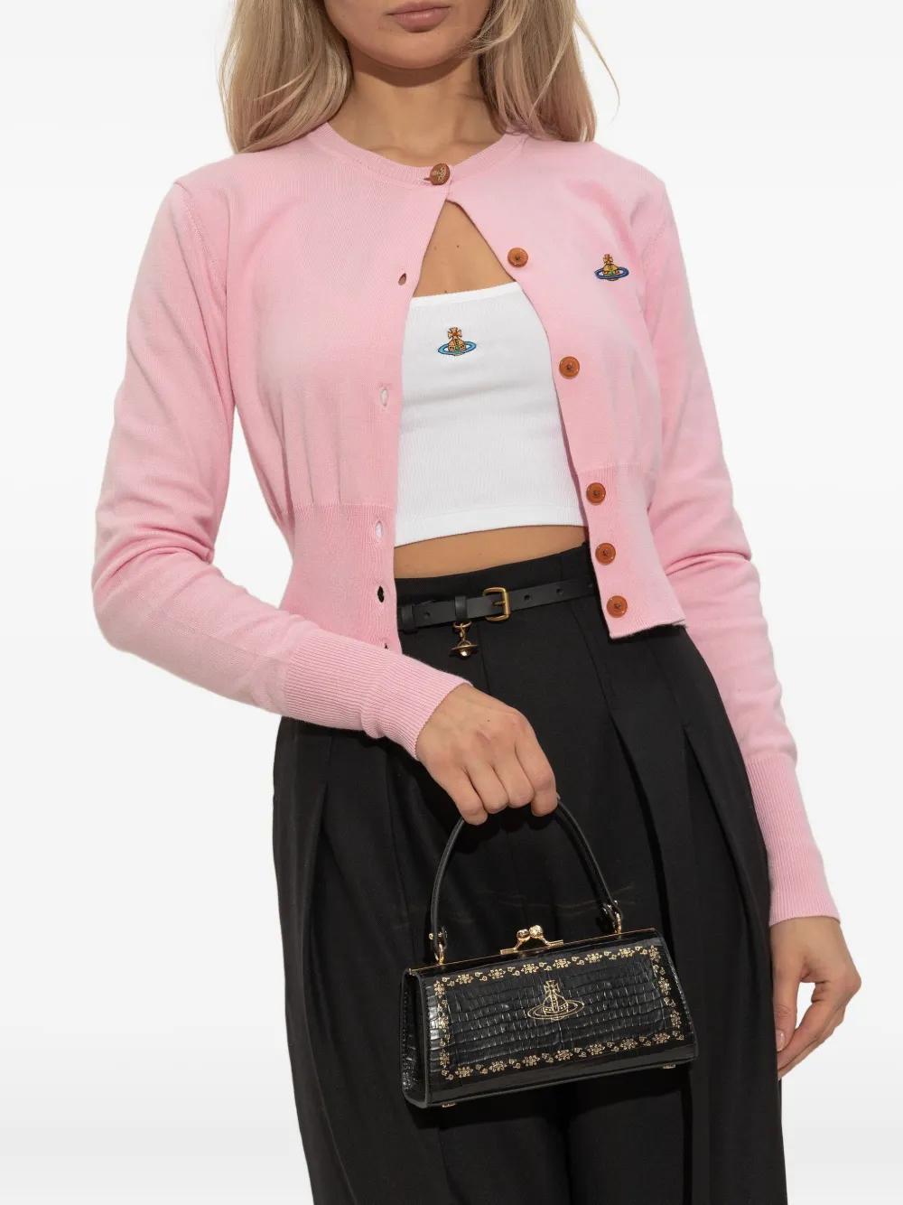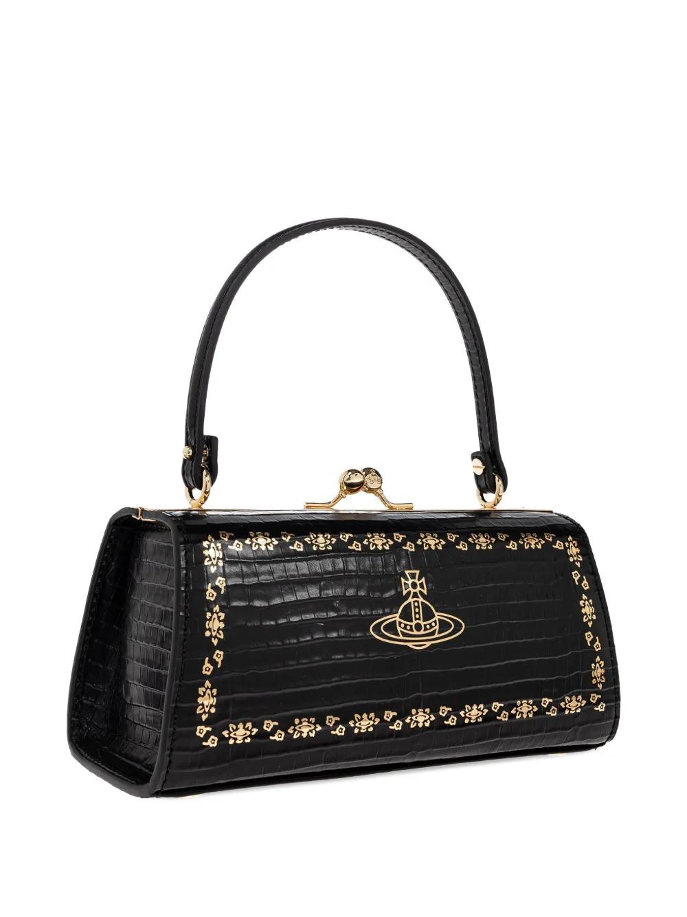 black crocodile-embossed leather gold-tone clasp frame top handle gold-tone Orb logo detachable shoulder strap