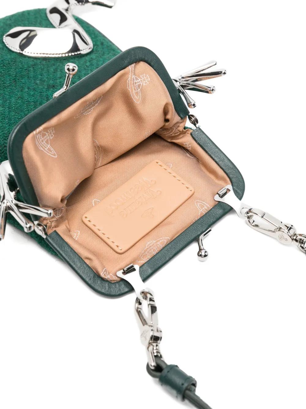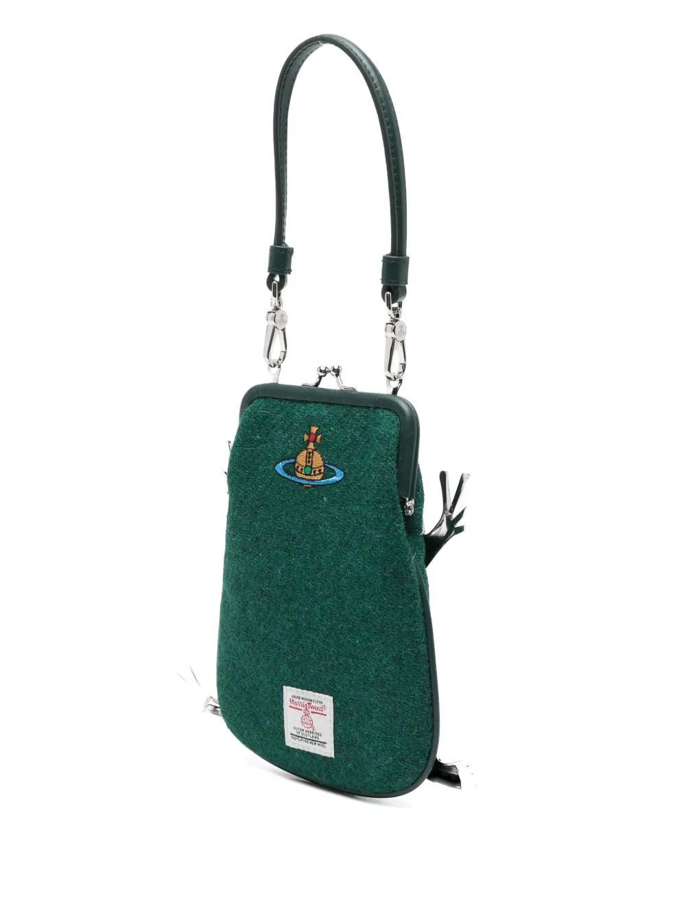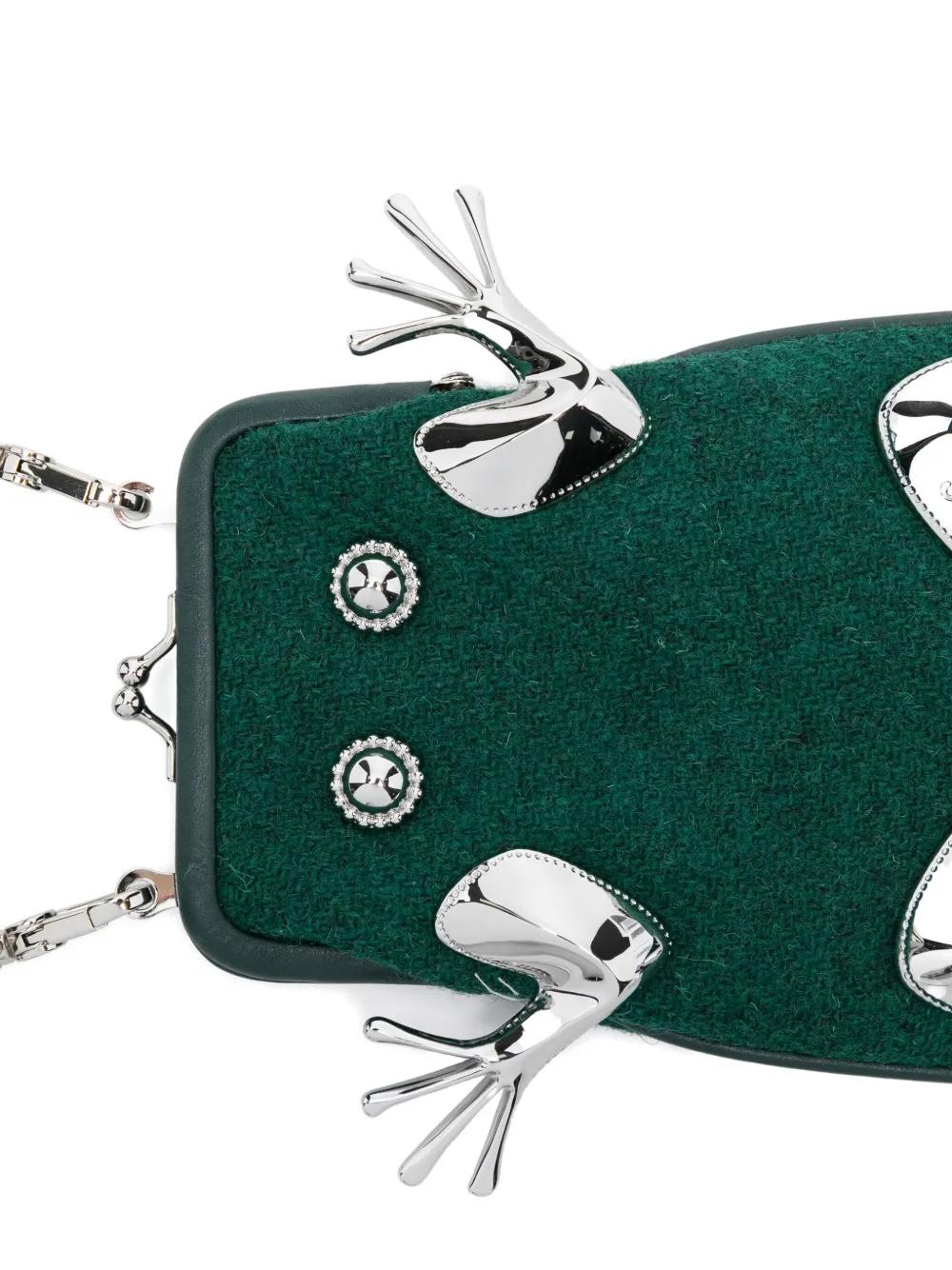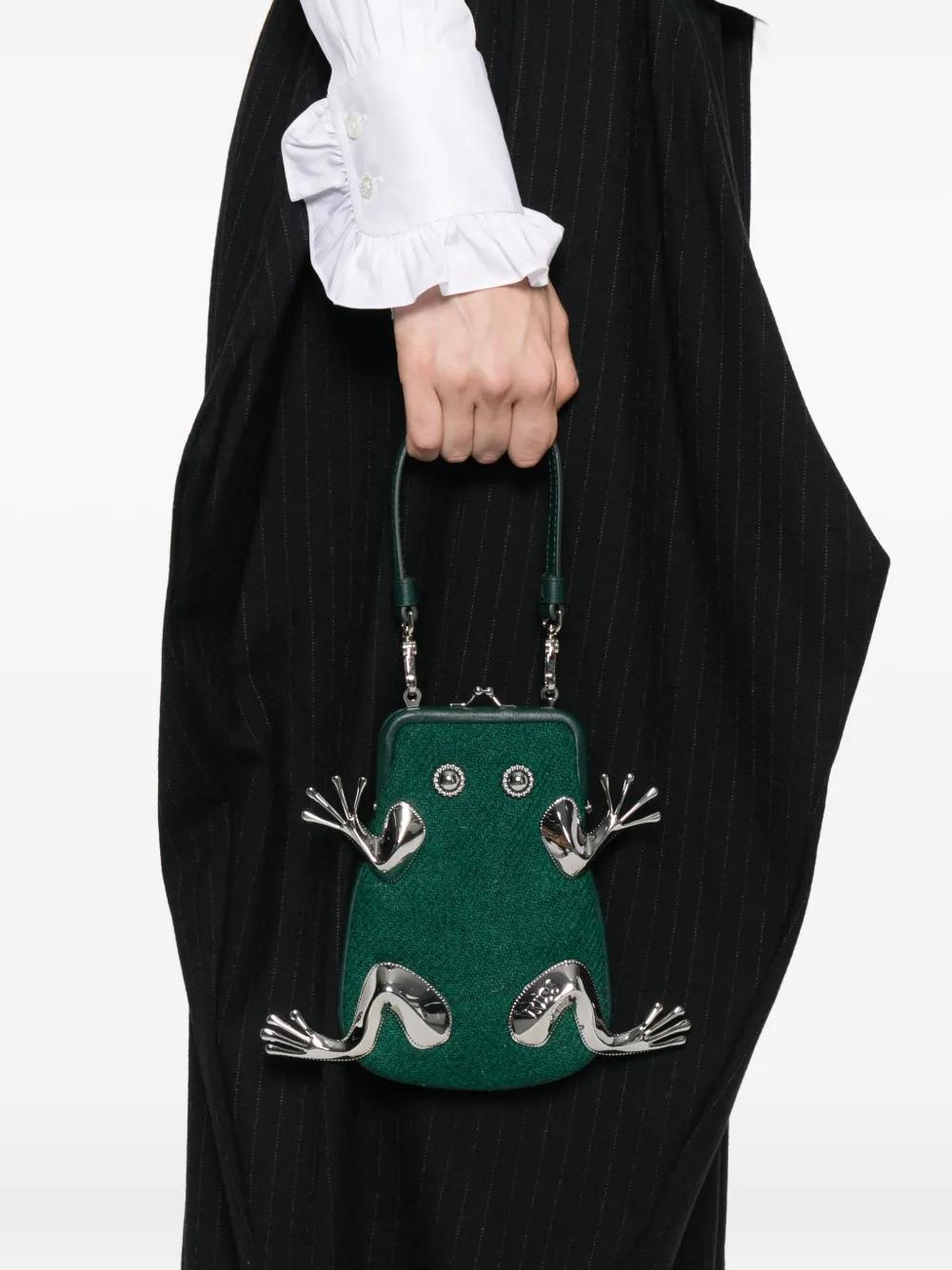 green frog detail detachable top handle chain-link shoulder strap Orb logo frame purse