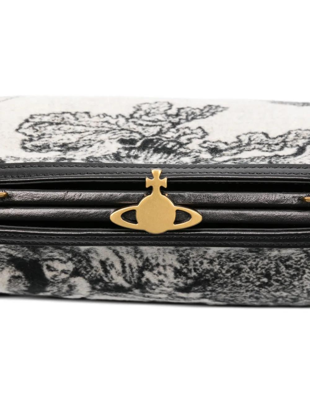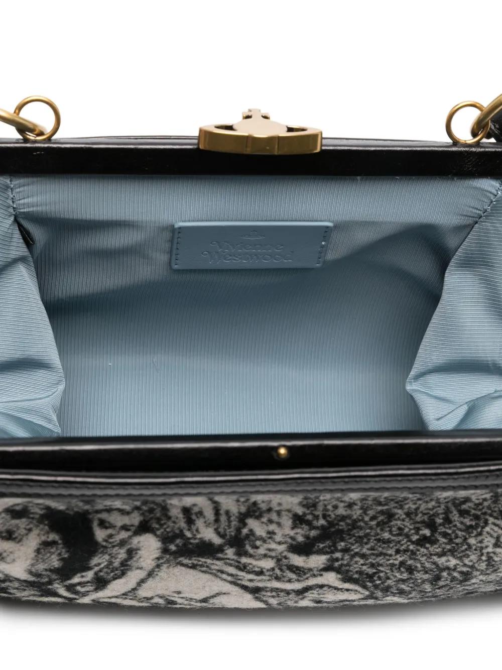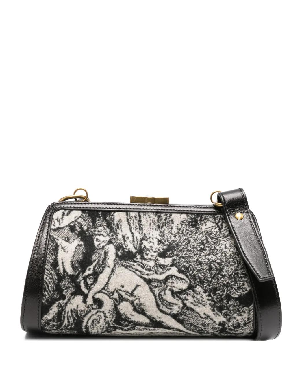 white graphic print single top handle gold-tone hardware top clasp fastening
