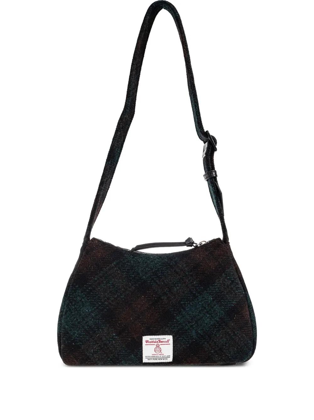 black and green plaid pattern orb plaque top zip fastening adjustable shoulder strap