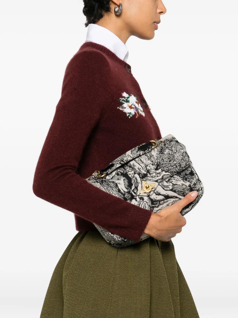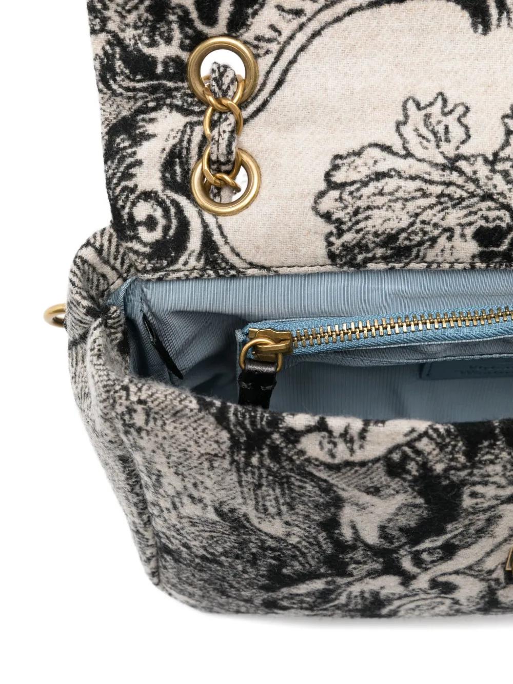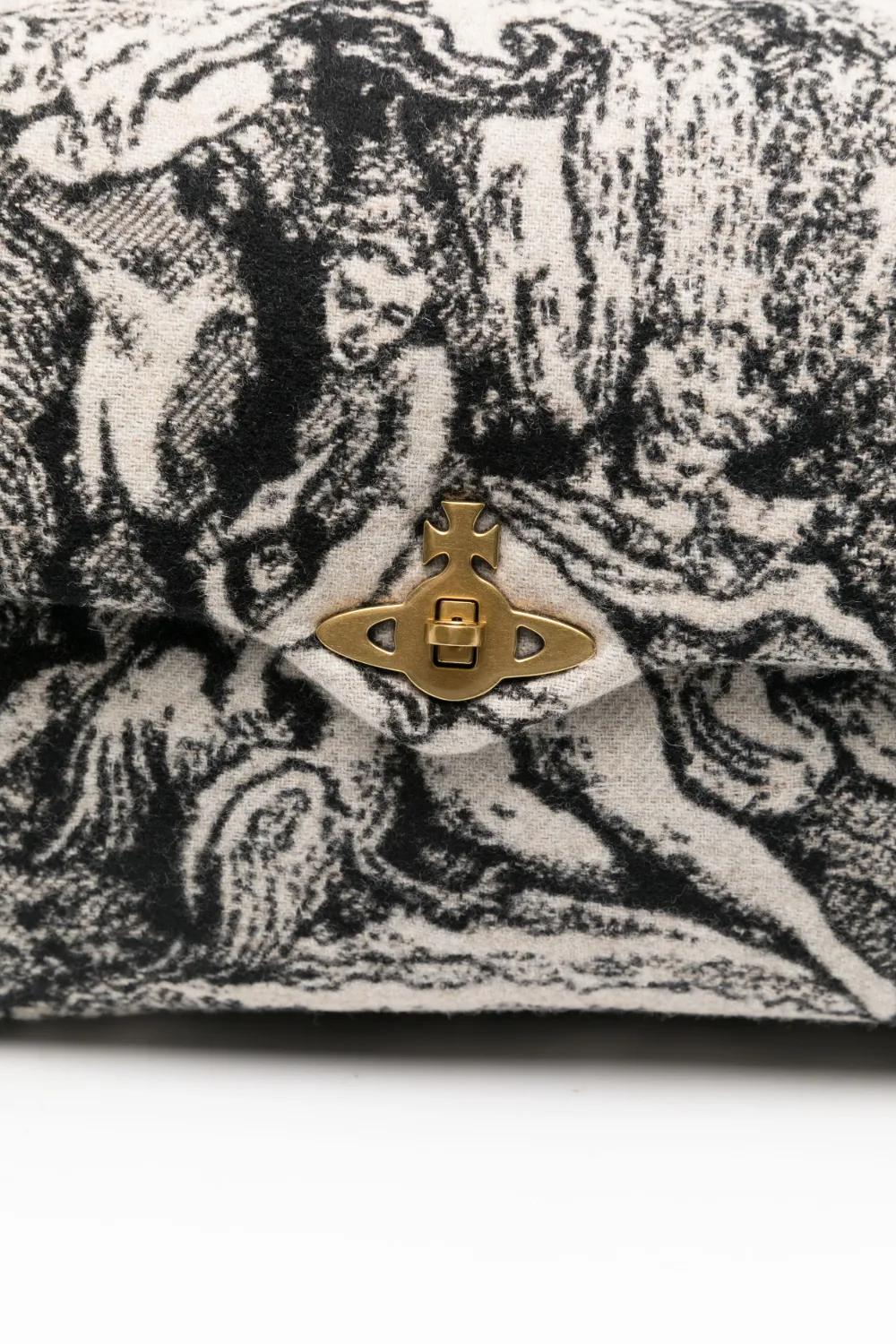 white and black graphic print gold-tone hardware chain shoulder strap orb detail