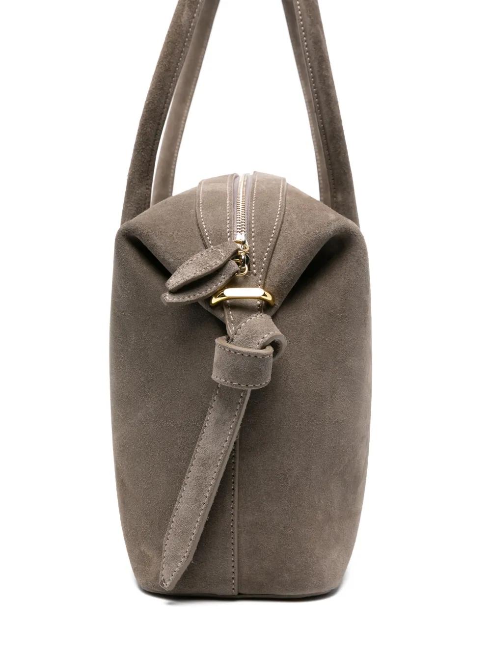 beige suede top handles knotted detail zip fastening gold-tone hardware
