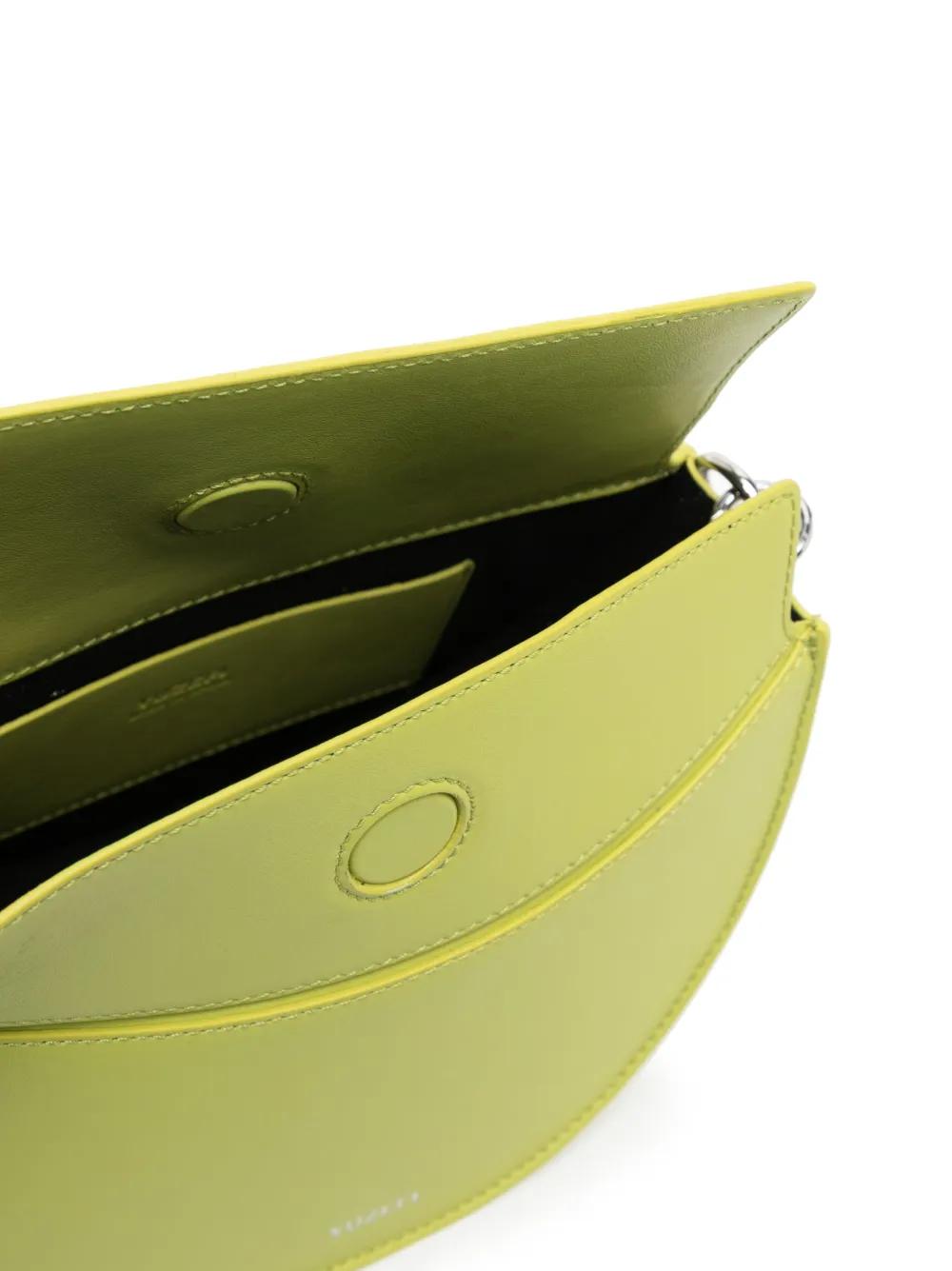 lime green calf leather silver-tone hardware silver-tone logo lettering curved corners detachable shoulder strap cable-link chain top zip fastening concealed magnetic fastening main compartment