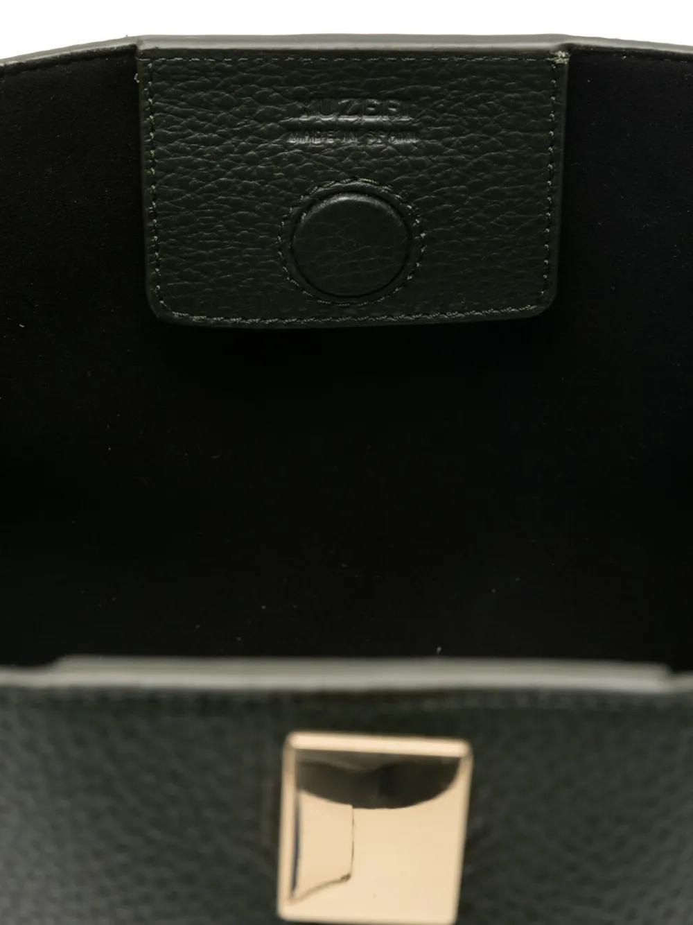 dark green single top handle detachable shoulder strap gold-tone hardware knot detailing textured finish