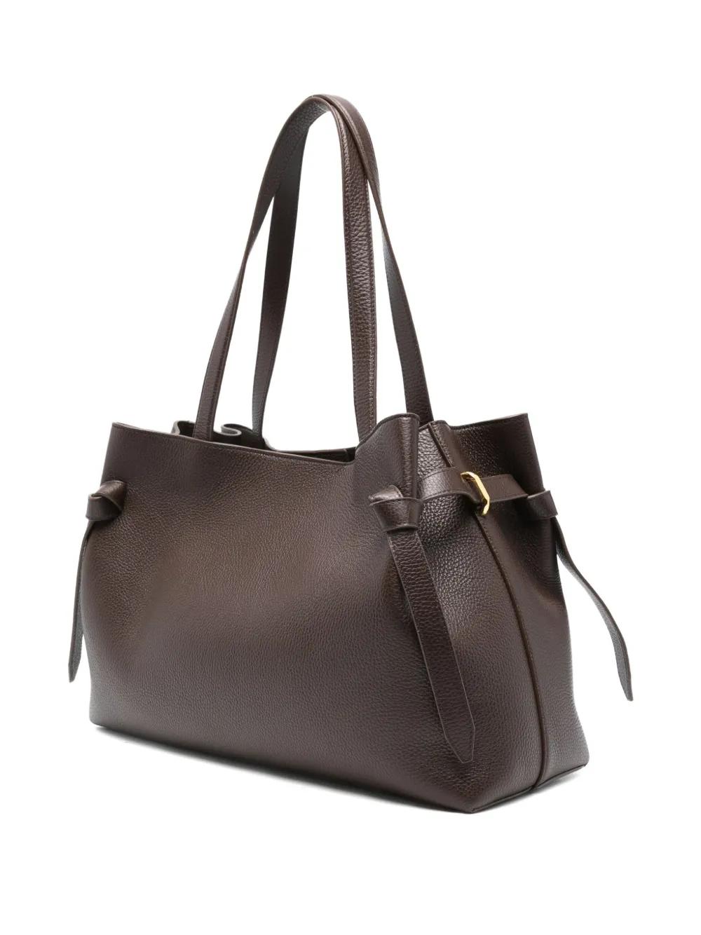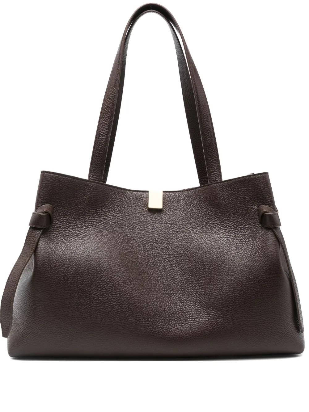 dark brown two top handles gold-tone hardware knot detail internal slip pocket magnetic fastening
