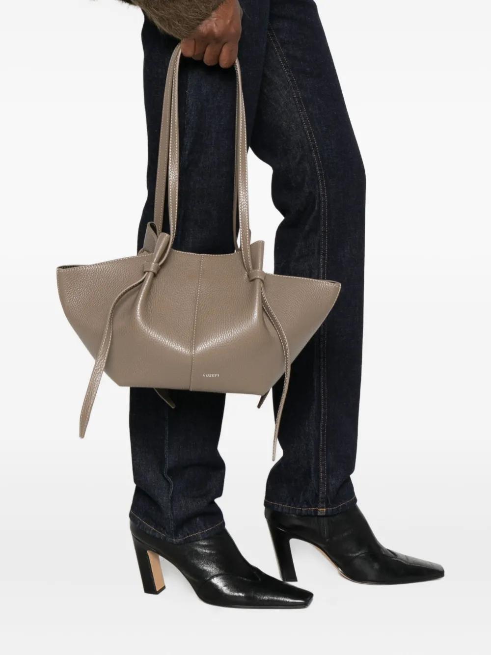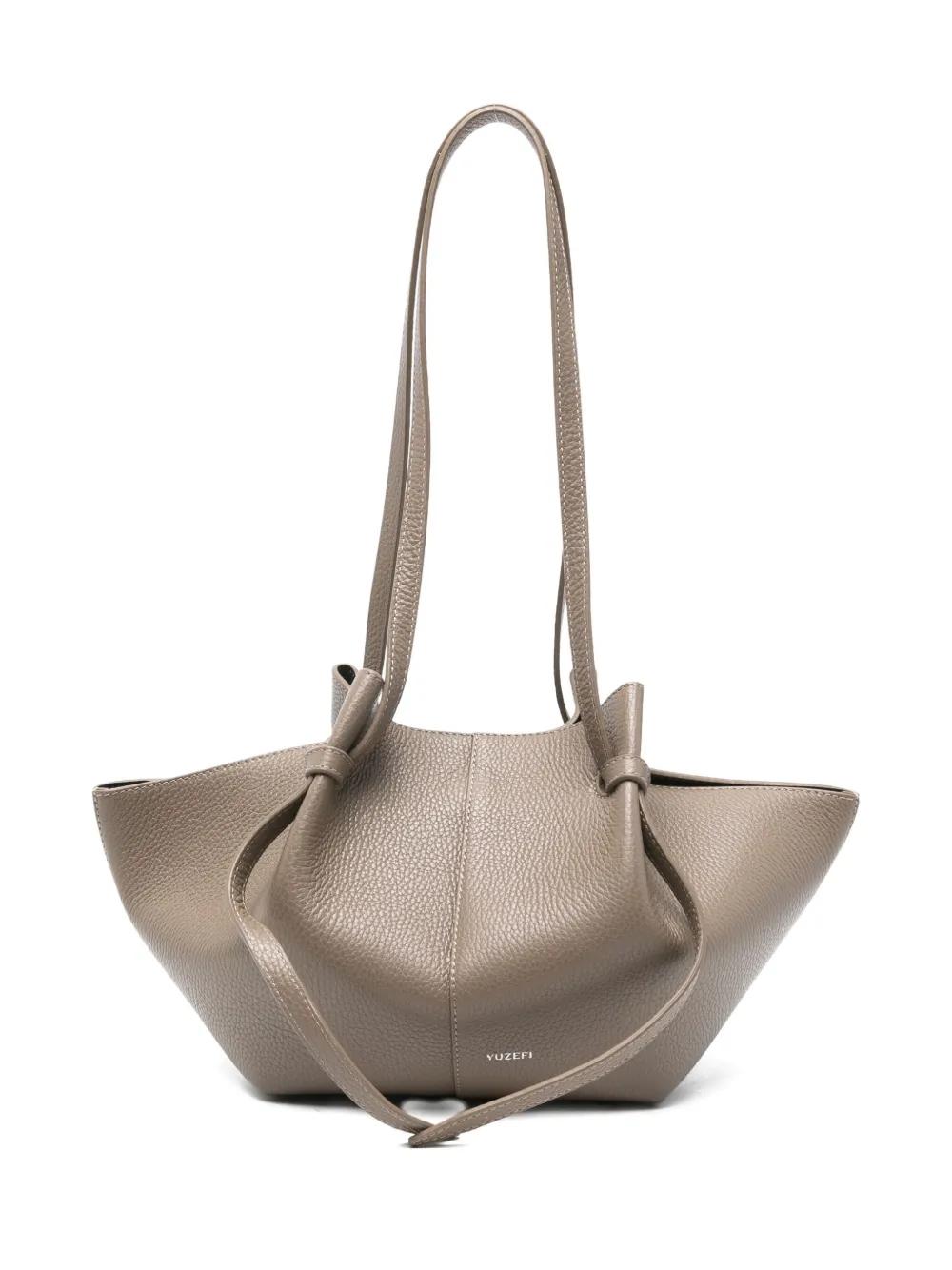 dove grey grained texture two top handles knot detailing open top internal logo stamp