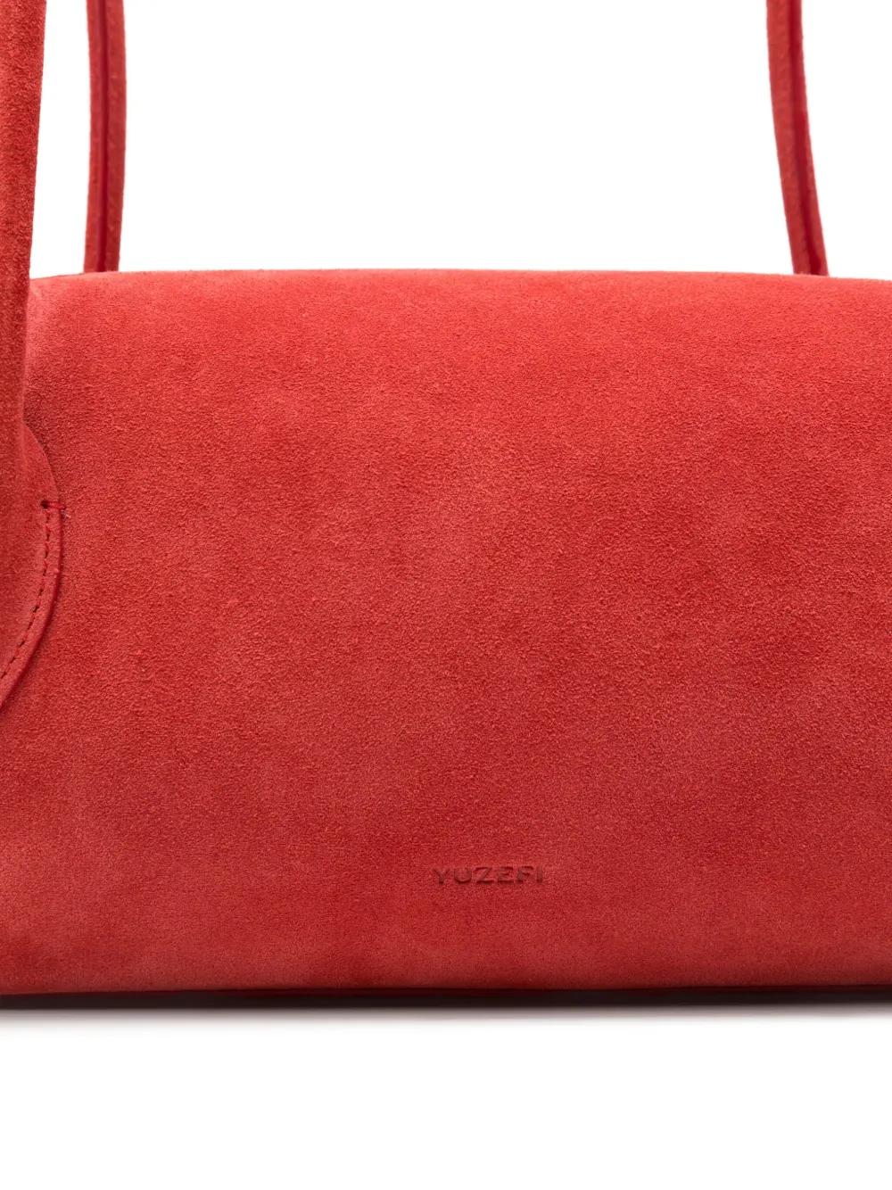 dark brown suede texture leather Gancini overlays Gancini buckle double compartment zip pocket