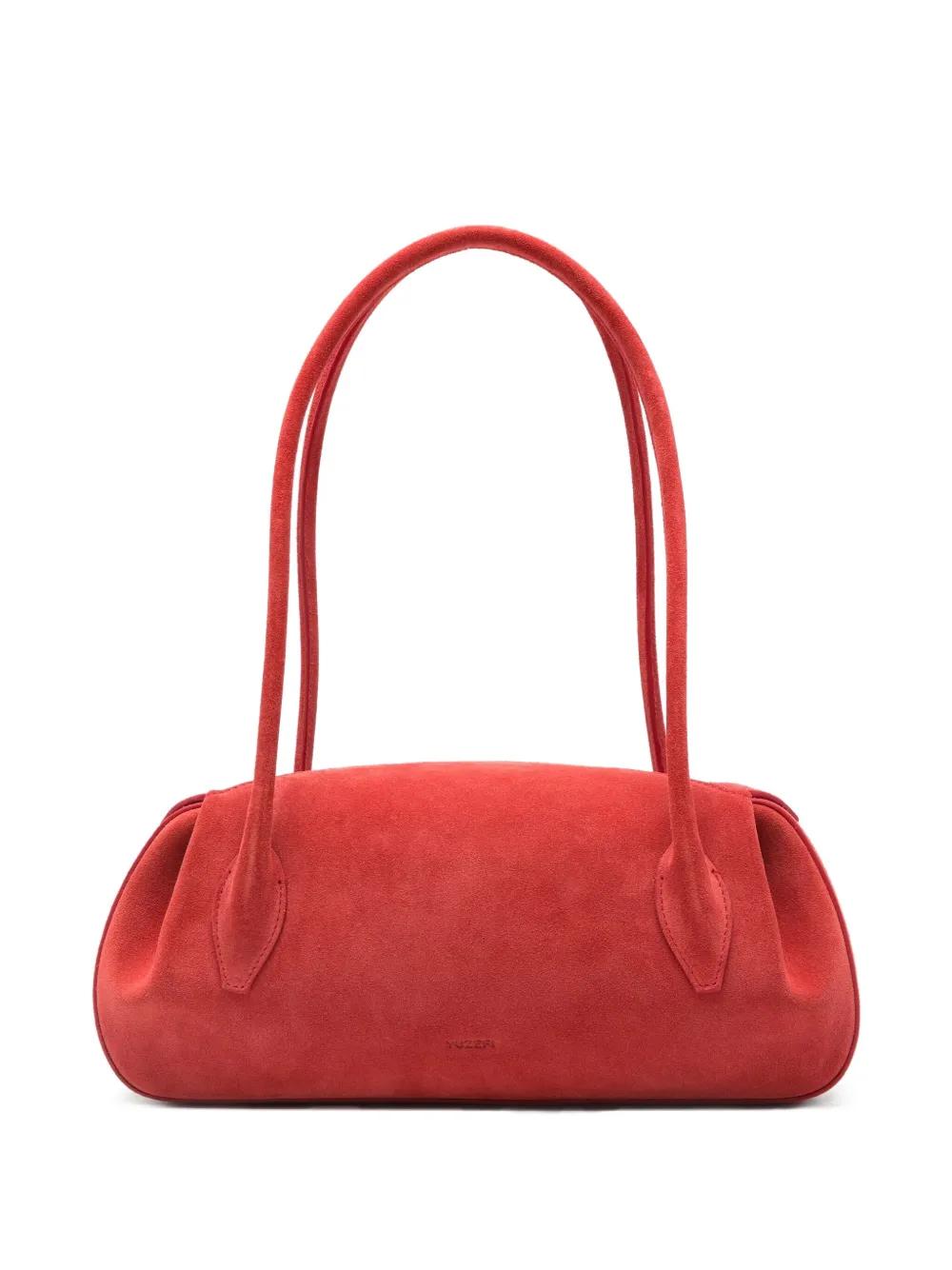 dark brown kid leather Gancini buckle gathered detailing two top handles