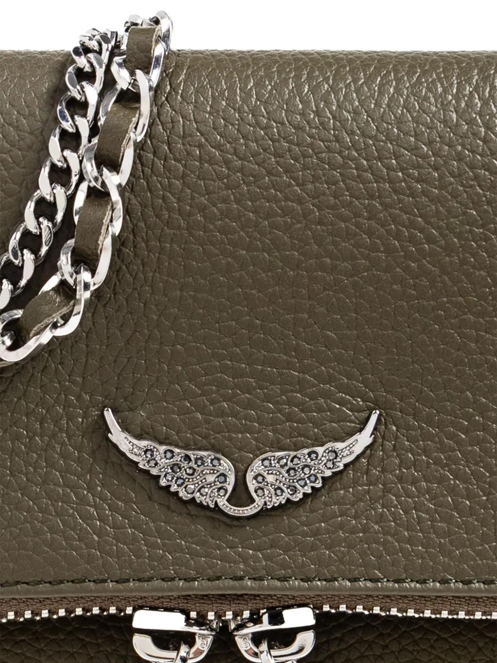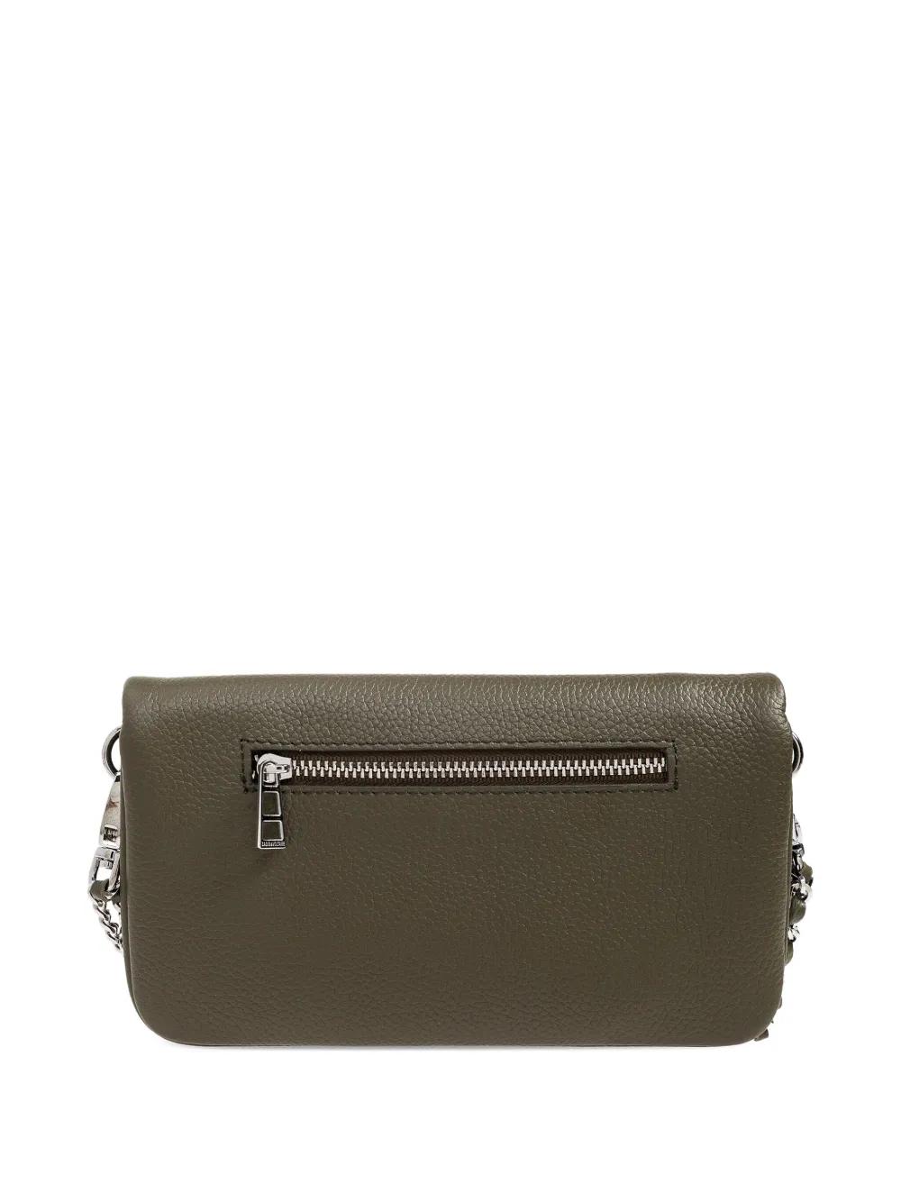 olive green calf leather zip fastening chain strap embellished logo double zip pull