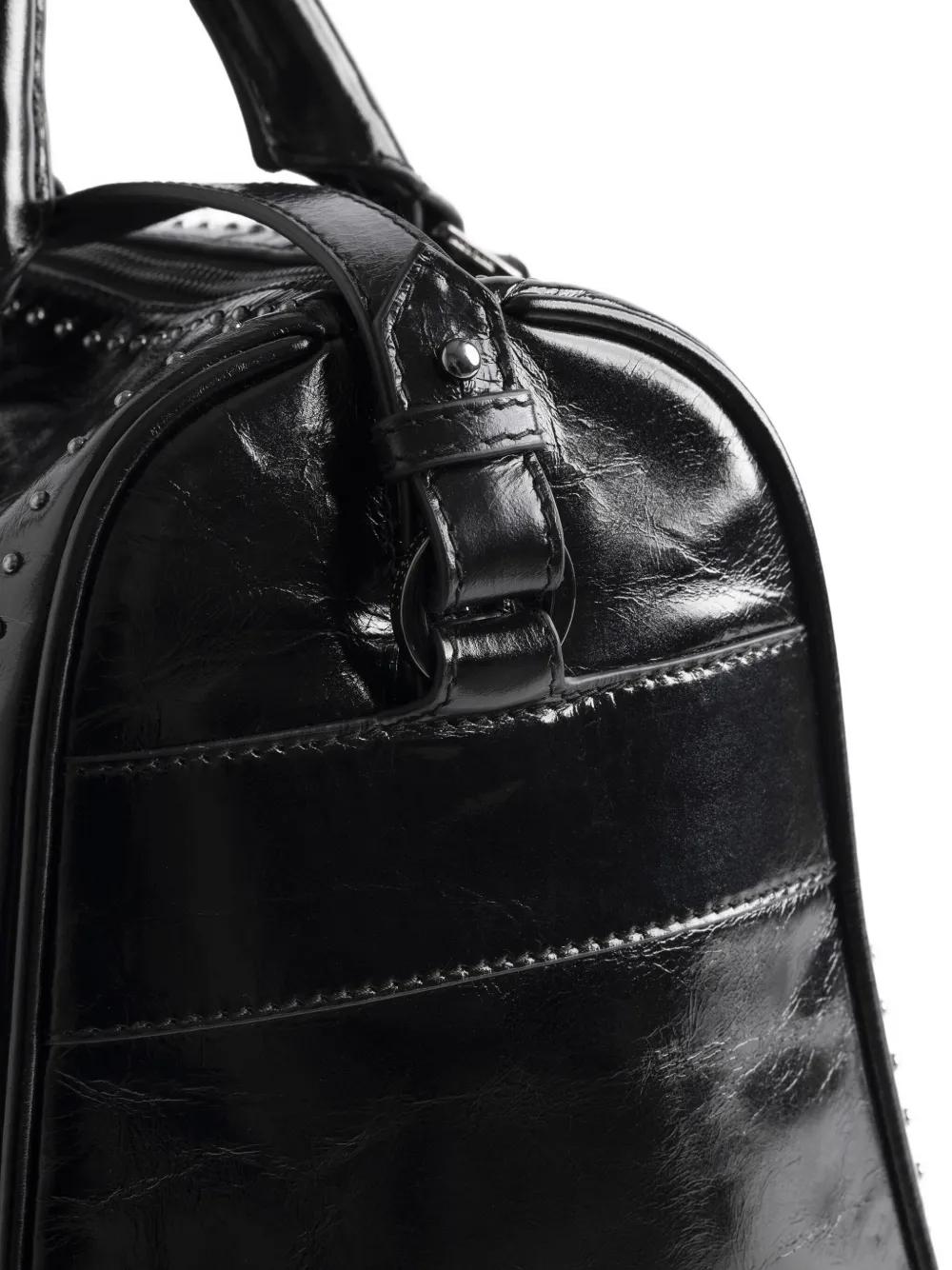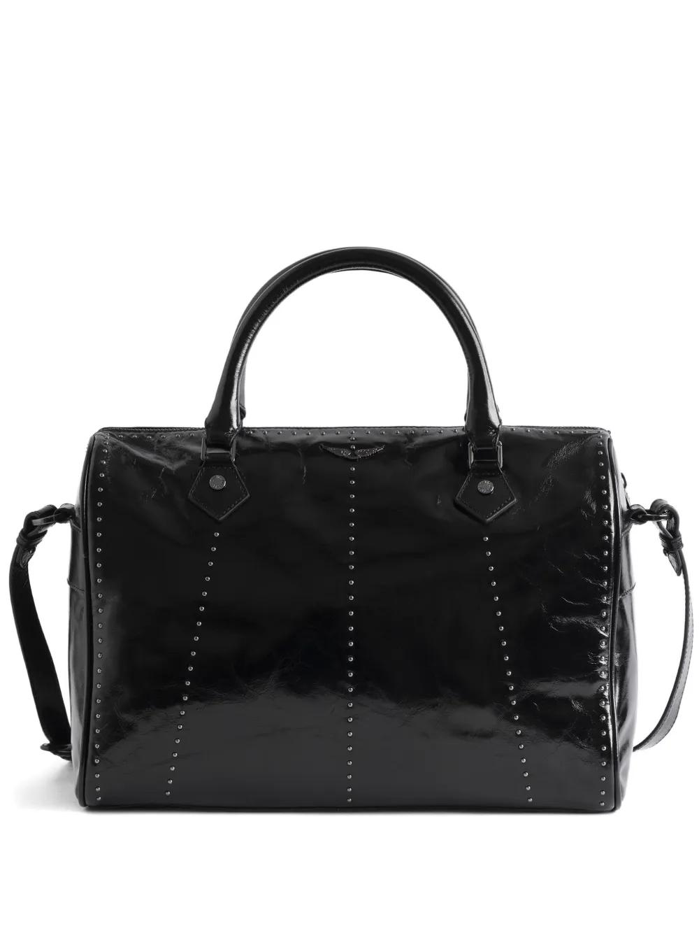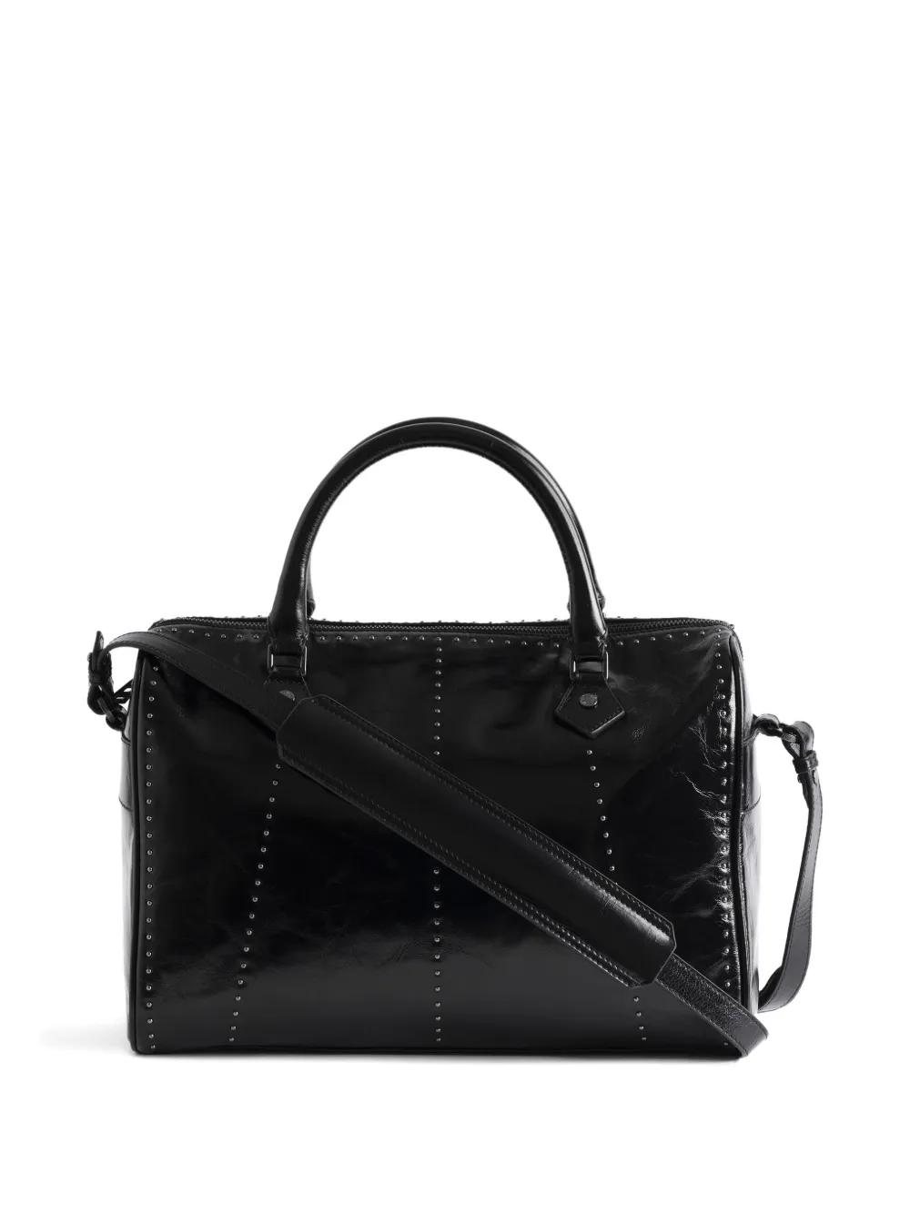 black studs top handles detachable shoulder strap zip fastening
