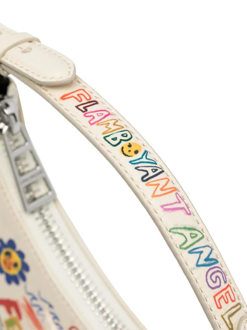 light beige/multicolour calf leather pebbled texture all-over illustration-style print logo plaque to the front two adjustable detachable shoulder straps detachable chain-link shoulder strap main compartment debossed internal logo internal slip pocket full lining top zip fastening This piece comes complete with a protective dust bag.