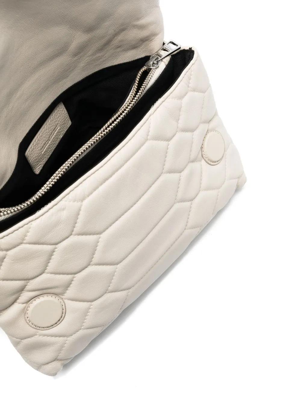 white lambskin/calf leather silver-tone hardware crystal embellishment logo plaque internal logo patch detachable chain-link top handle foldover top with magnetic fastening partitioned compartment internal zip-fastening pocket front zip-fastening compartment