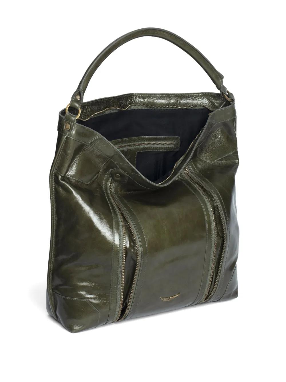 moss green top zip fastening single top handle front zip fastening pockets This piece comes complete with a protective dust bag.