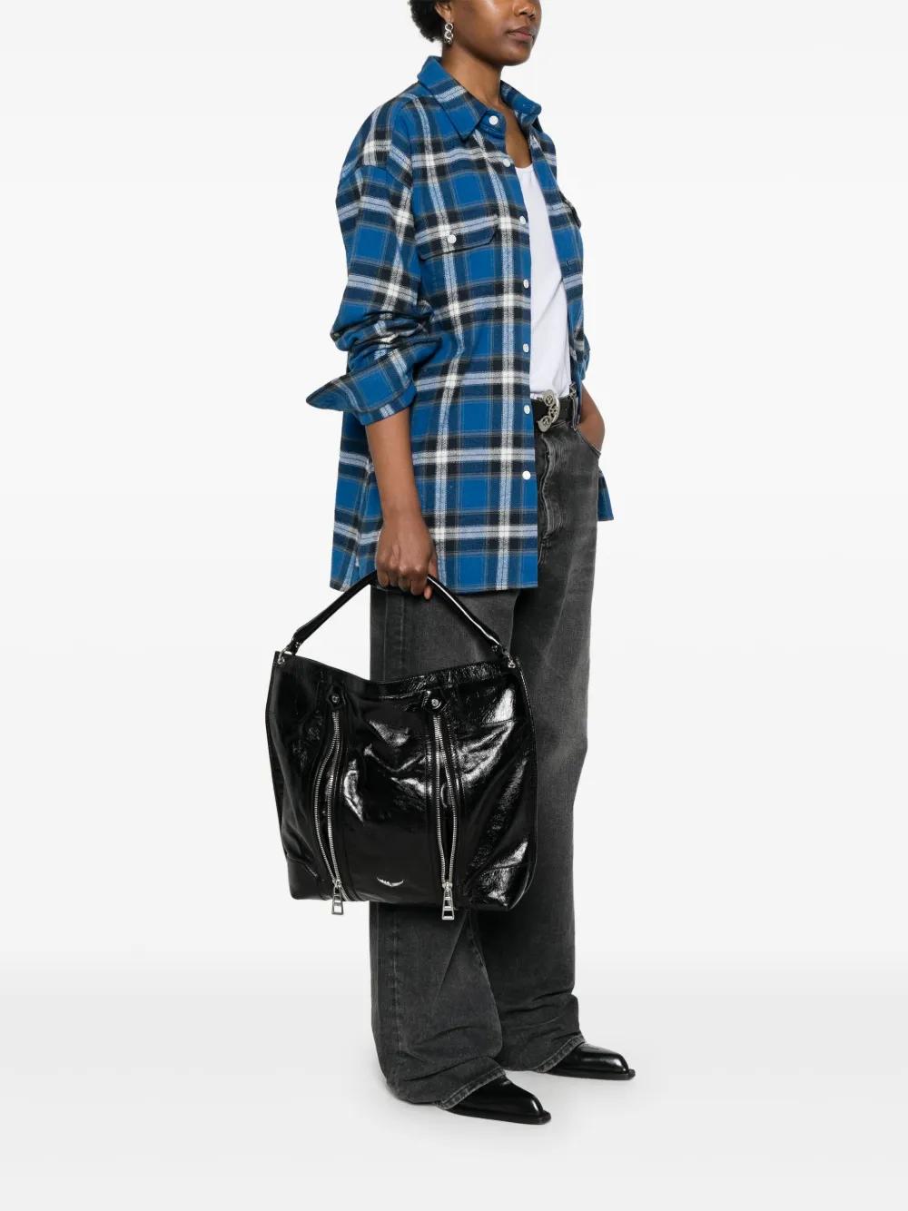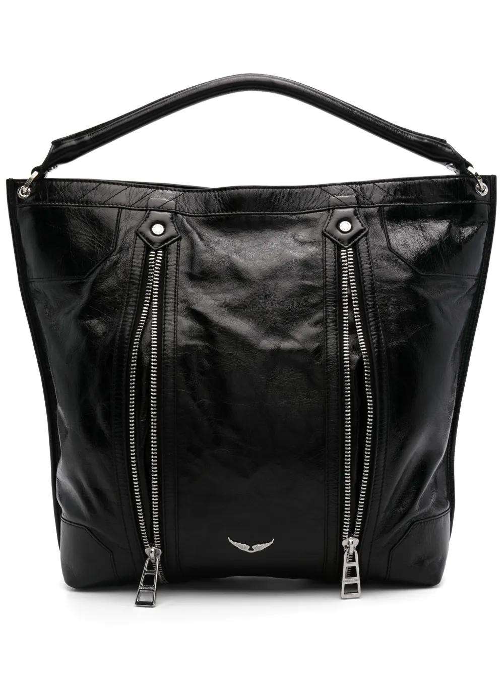 black calf leather grained texture decorative zip detailing signature logo wings single rolled top handle main compartment internal zip-fastening pocket full lining logo-engraved silver-tone hardware concealed top zip fastening