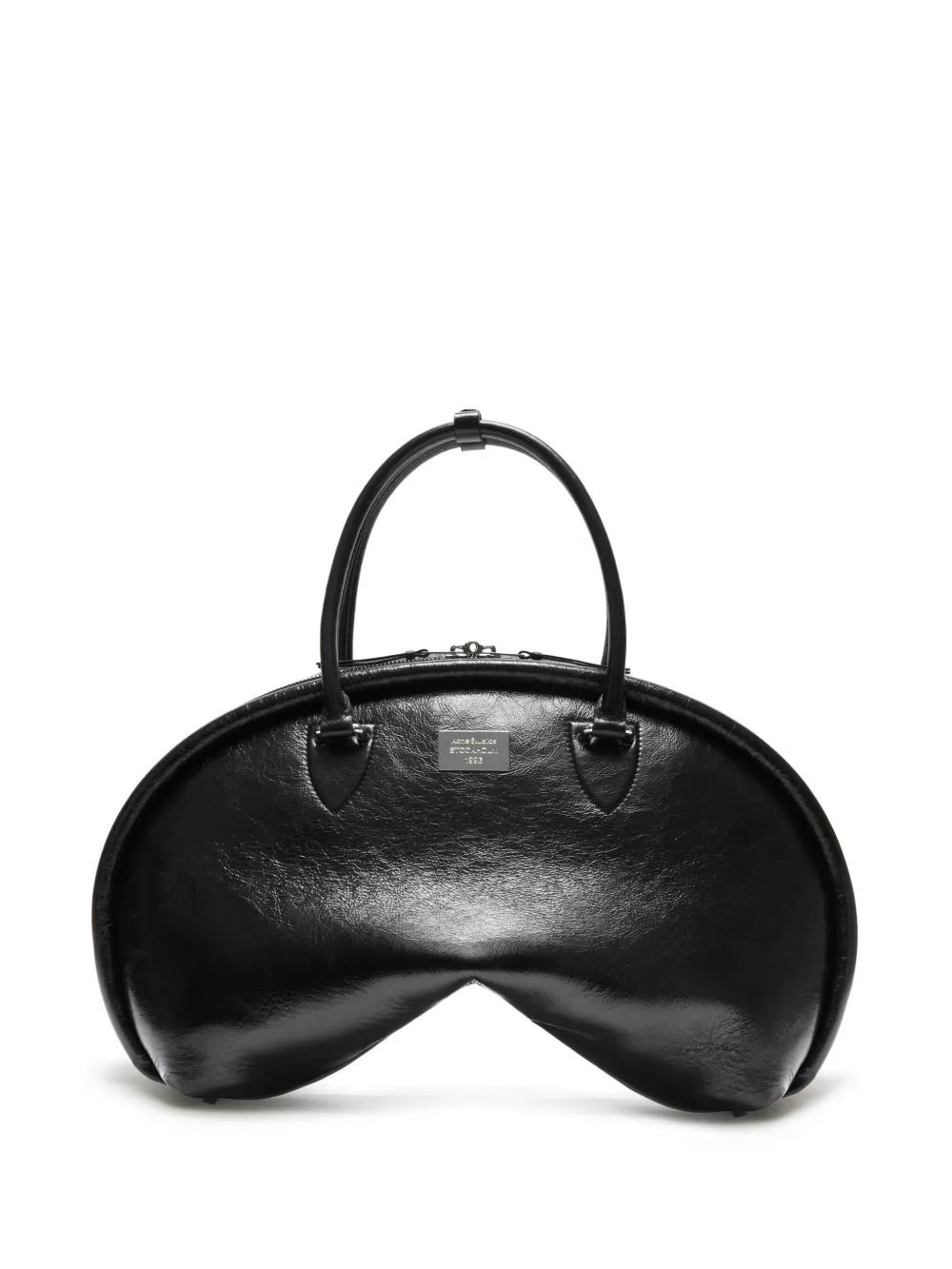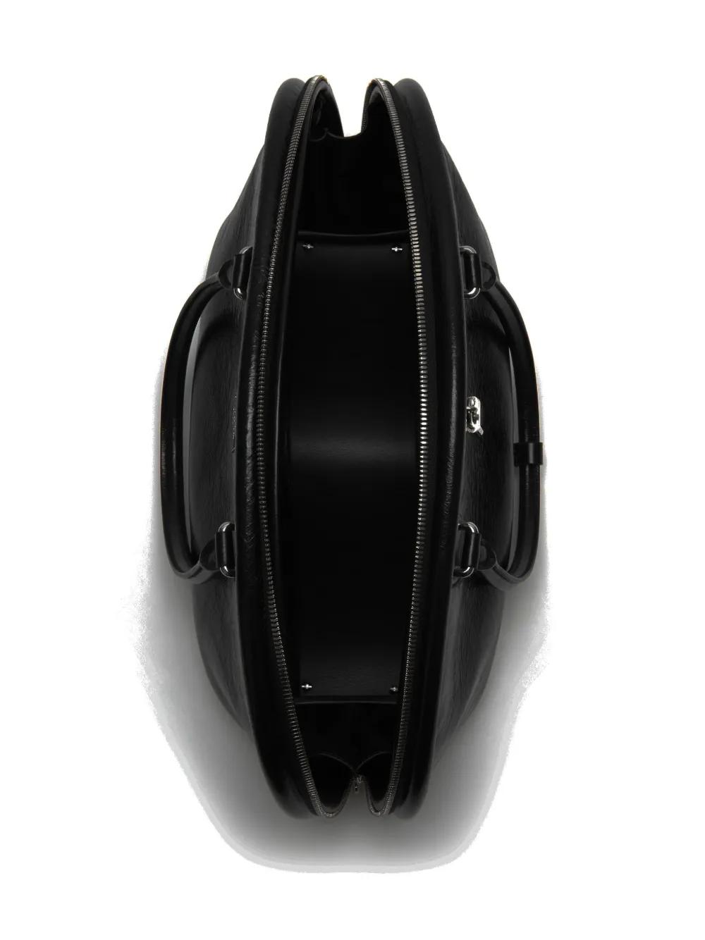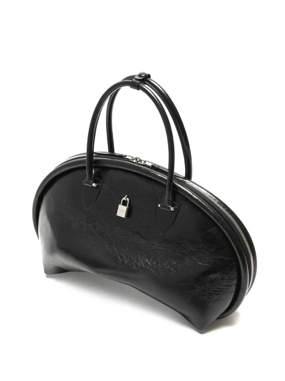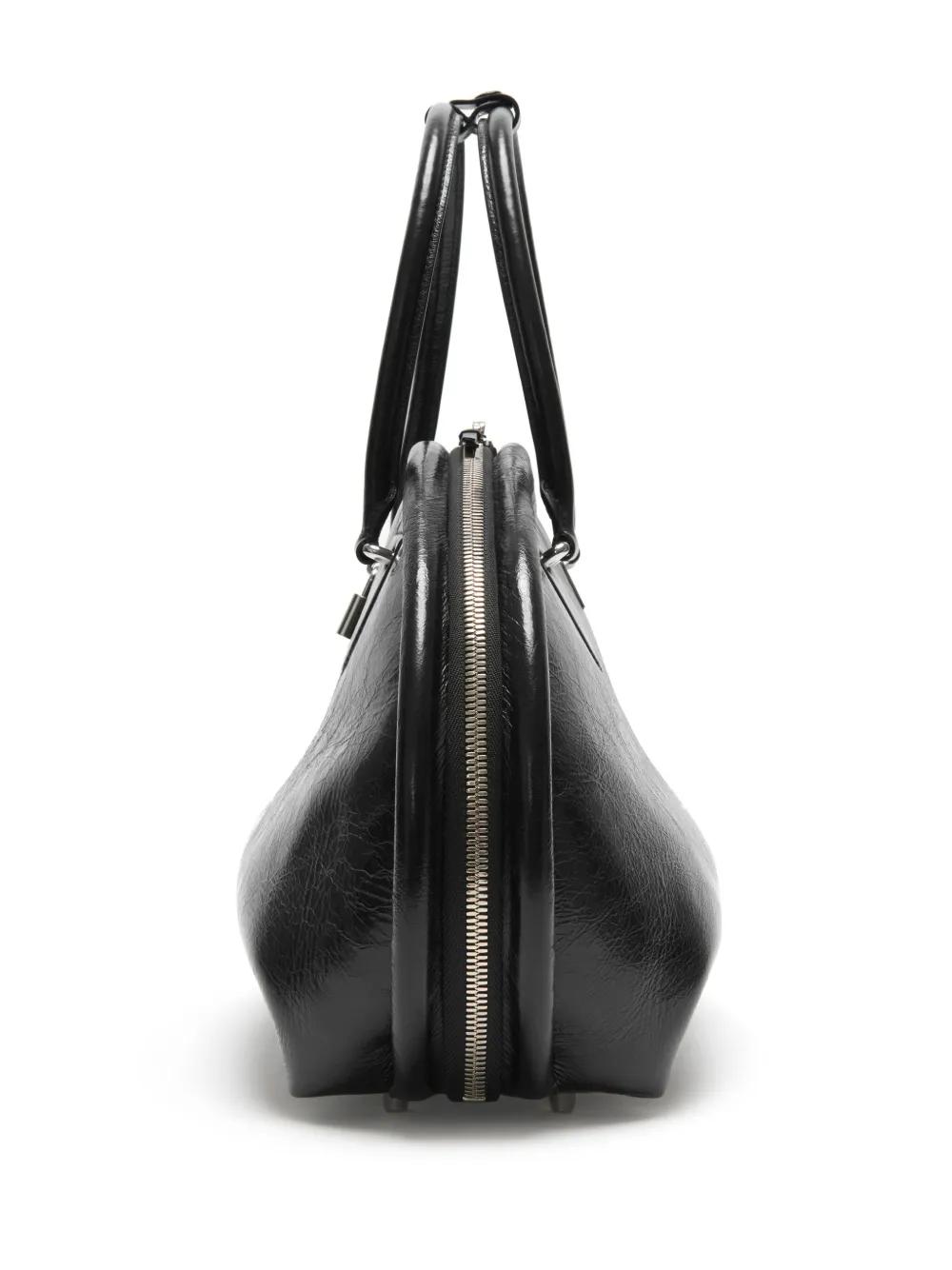 black calf leather all-around zip fastening two top handles silver-tone logo plaque padlock detail main compartment