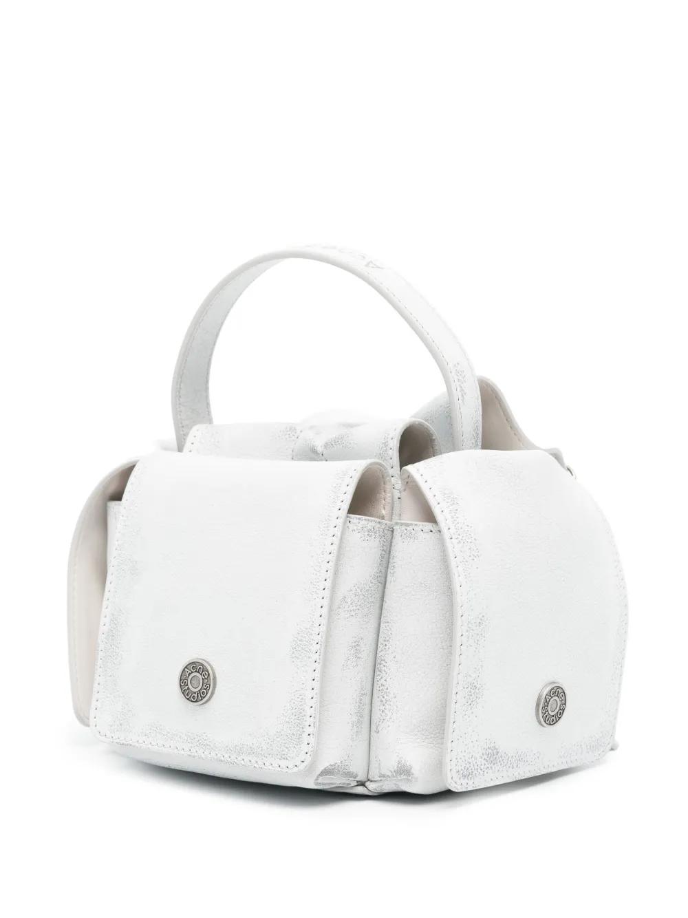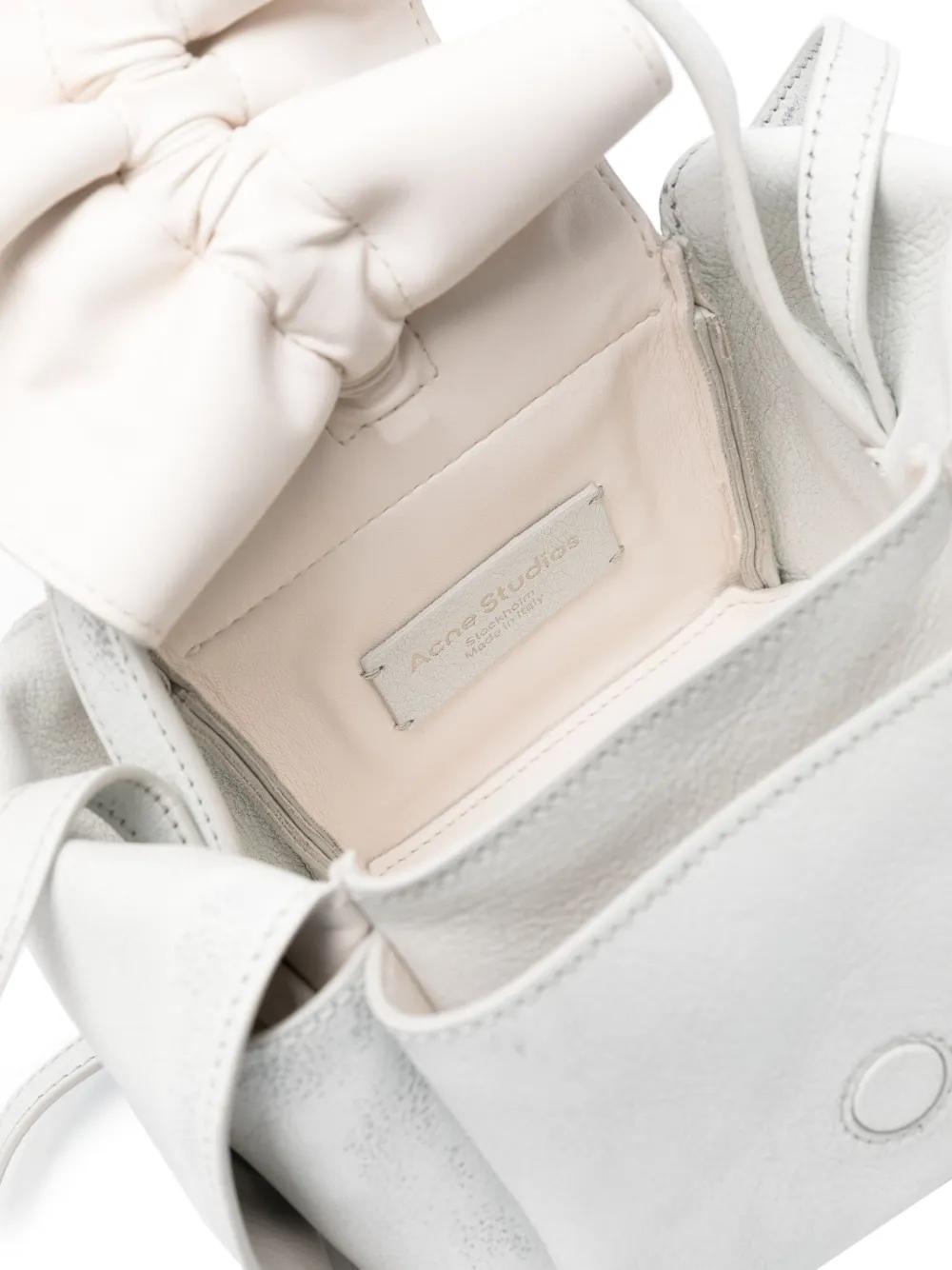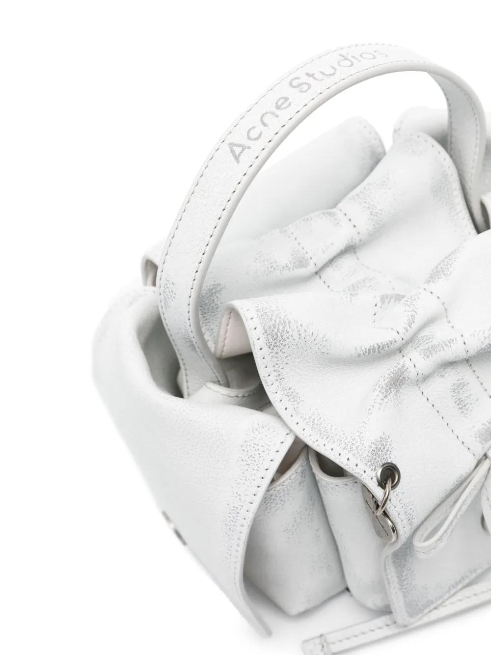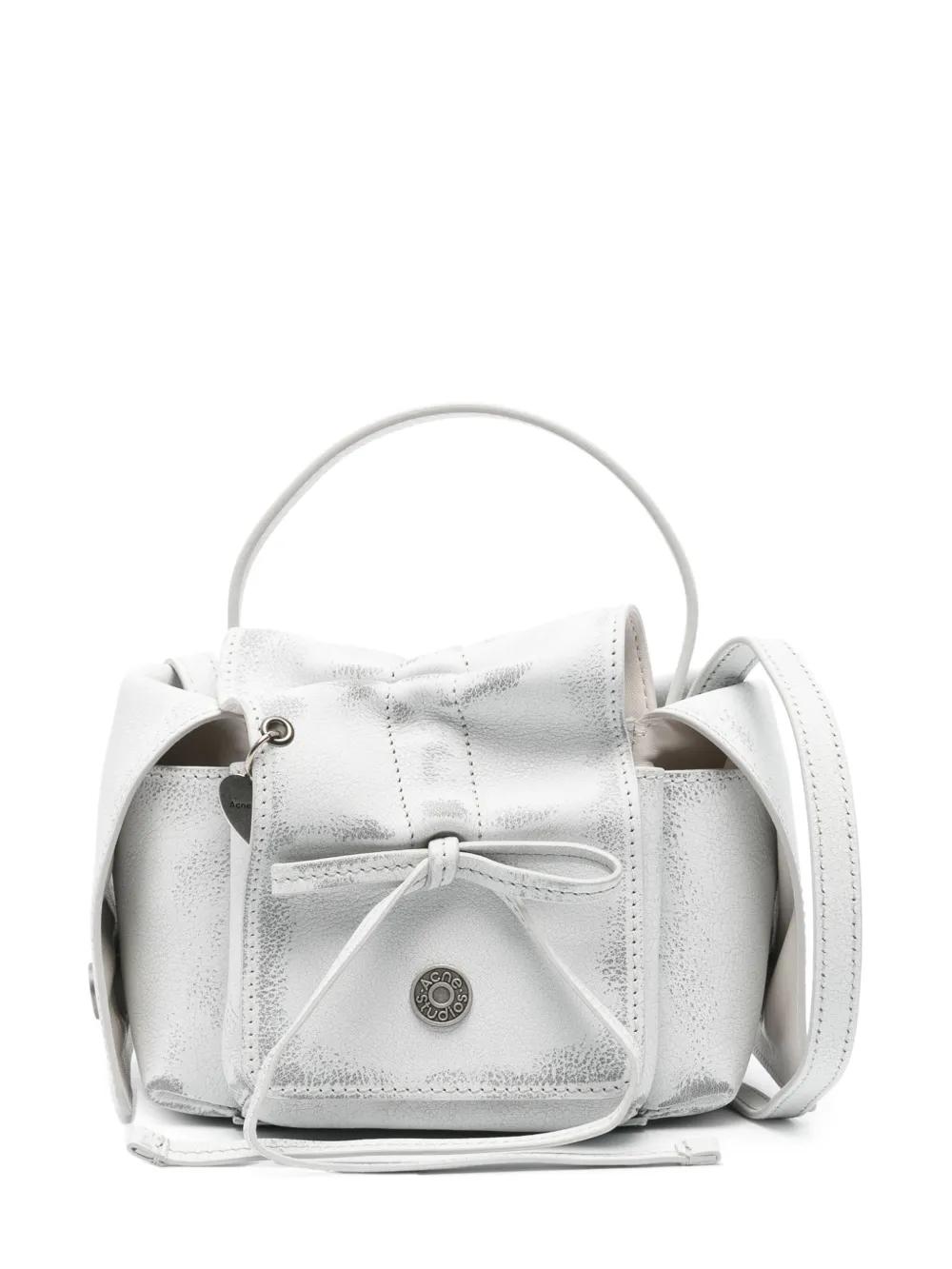 grey/white calf leather crinkled finish washed bow detailing logo pendant logo-engraved silver-tone hardware embossed logo to the handle internal logo patch foldover top with magnetic fastening single flat top handle single shoulder strap rear flap pocket two side flap pockets main compartment internal patch pocket leather lining