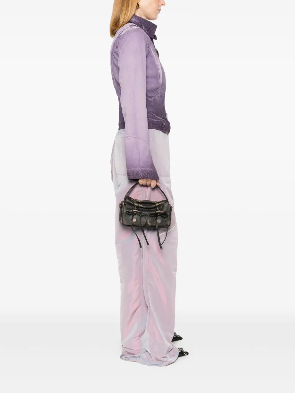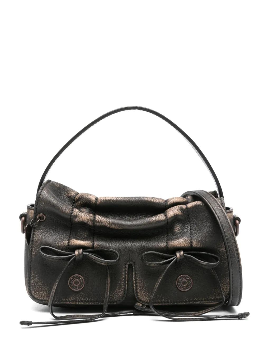 cedar brown calf leather washed bow detailing gathered detailing foldover top rear slit pocket logo-embossed top handle adjustable detachable shoulder strap main compartment internal card slots logo-engraved oxidised hardware concealed magnetic fastening This piece comes complete with a protective dust bag.