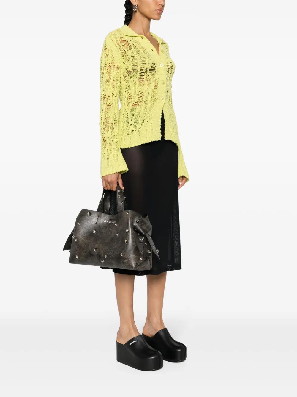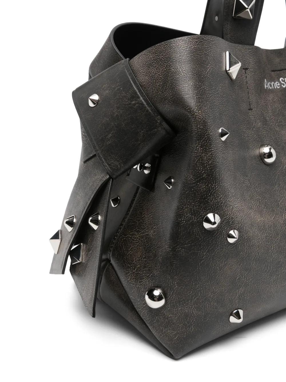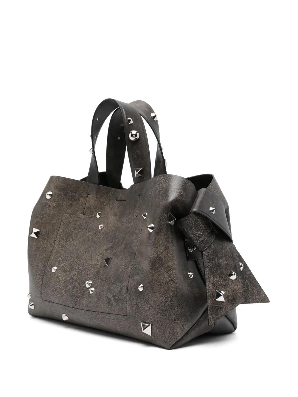 cedar brown calf leather pebbled texture distressed effect stud embellishment adjustable detachable shoulder strap two flat top handles knot detailing debossed logo to the front main compartment internal slip pocket internal zip-fastening pocket magnetic fastening This piece comes complete with a protective dust bag.