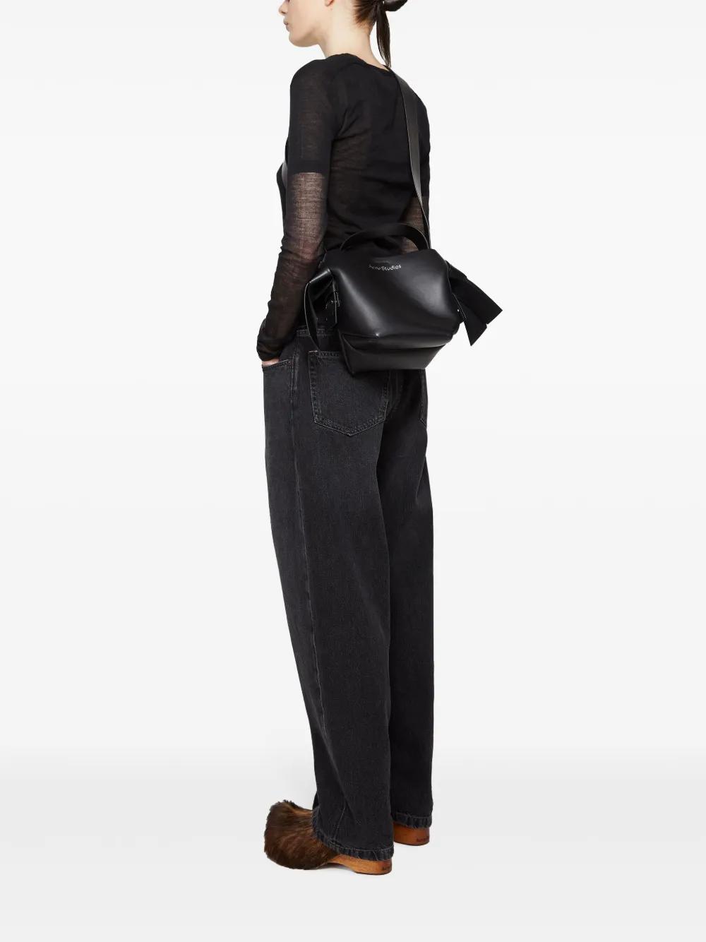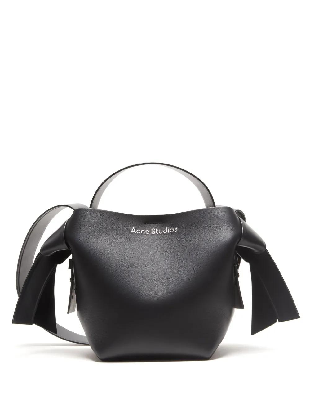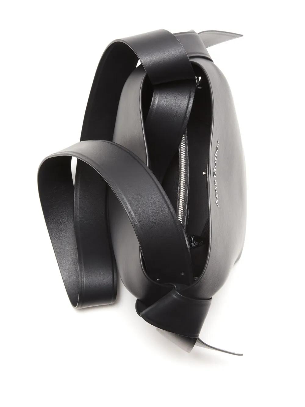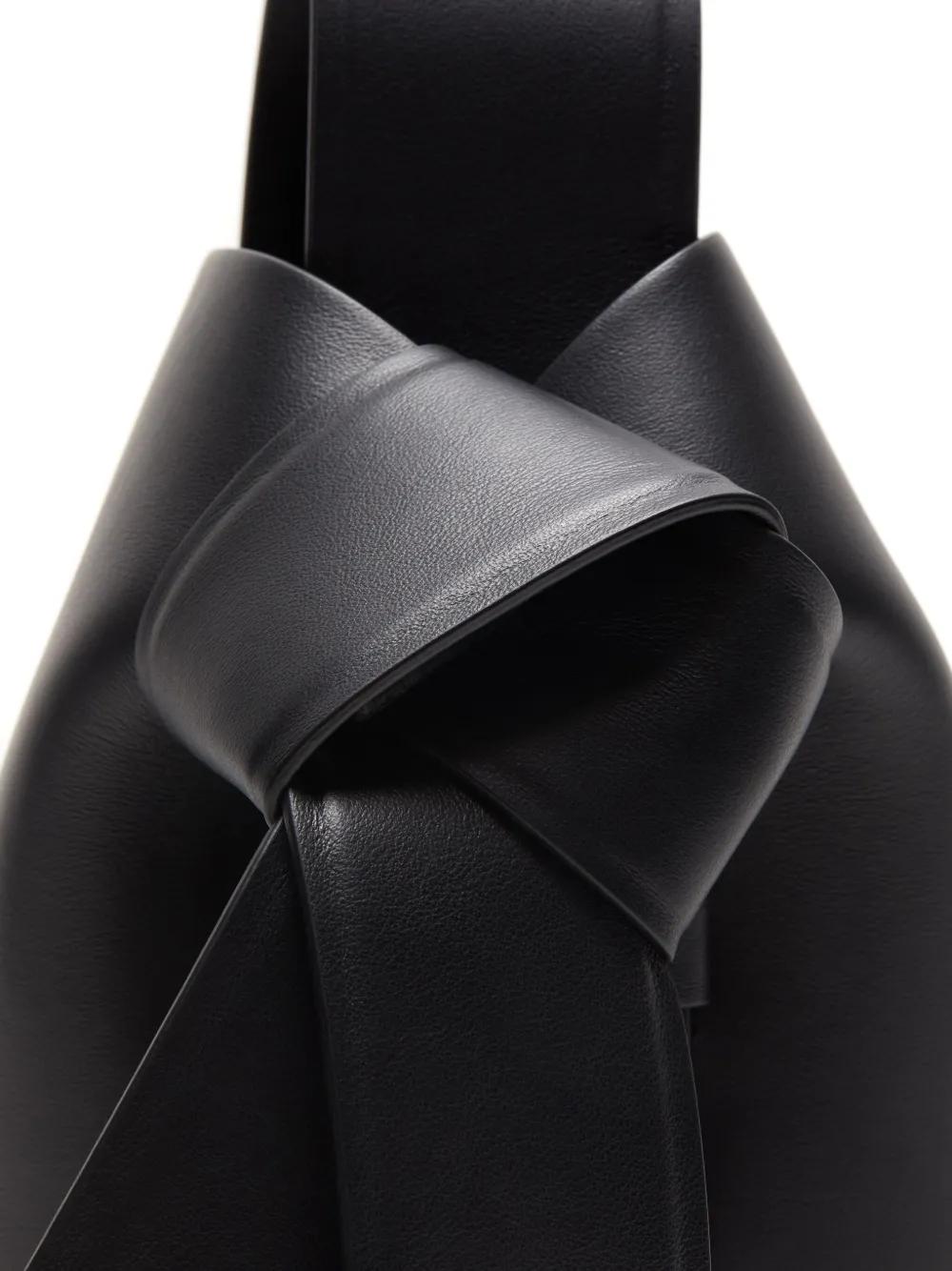 black calf leather smooth grain press-stud fastening single flat top handle adjustable detachable shoulder strap embossed logo to the front knot detailing main compartment