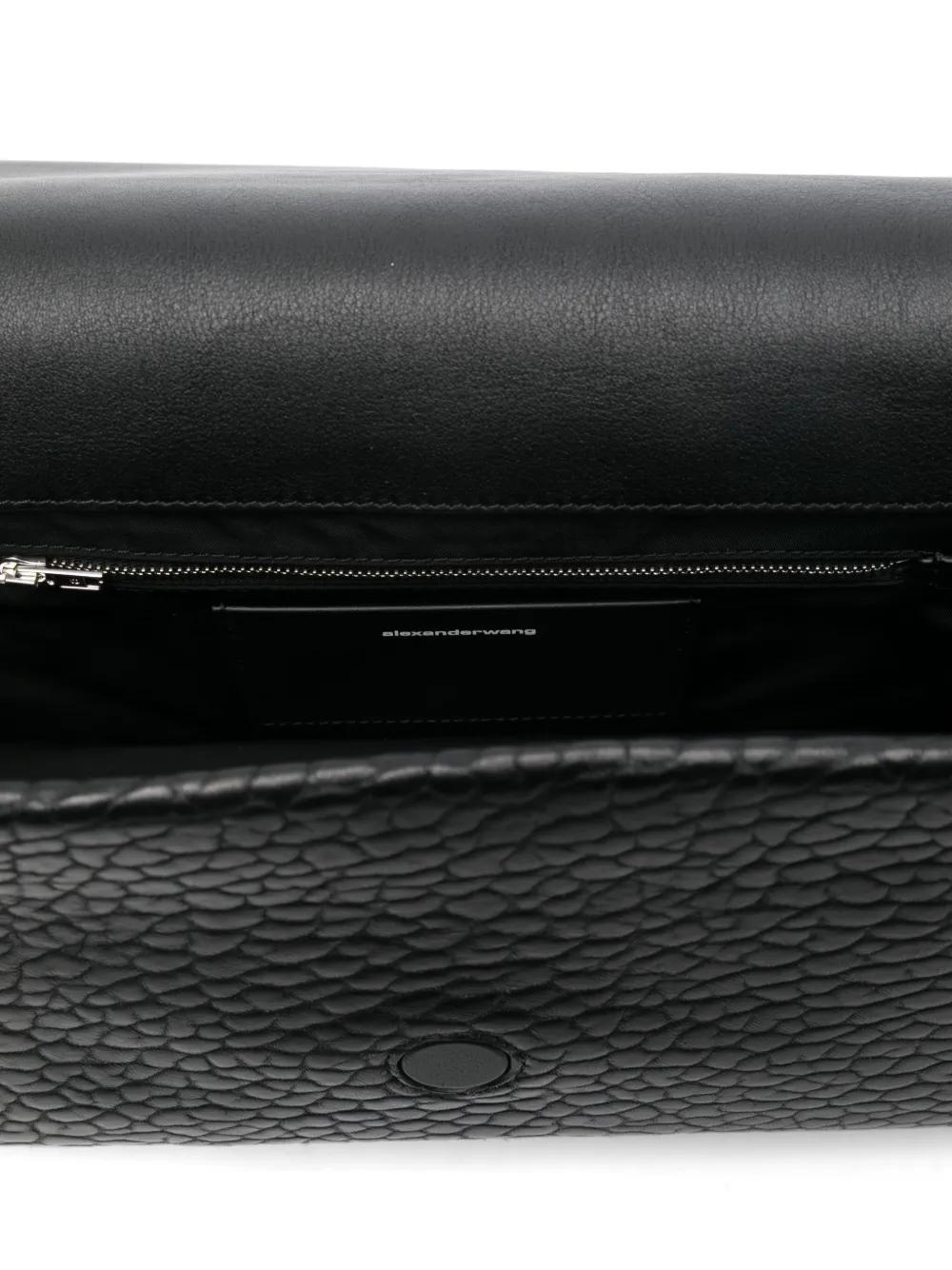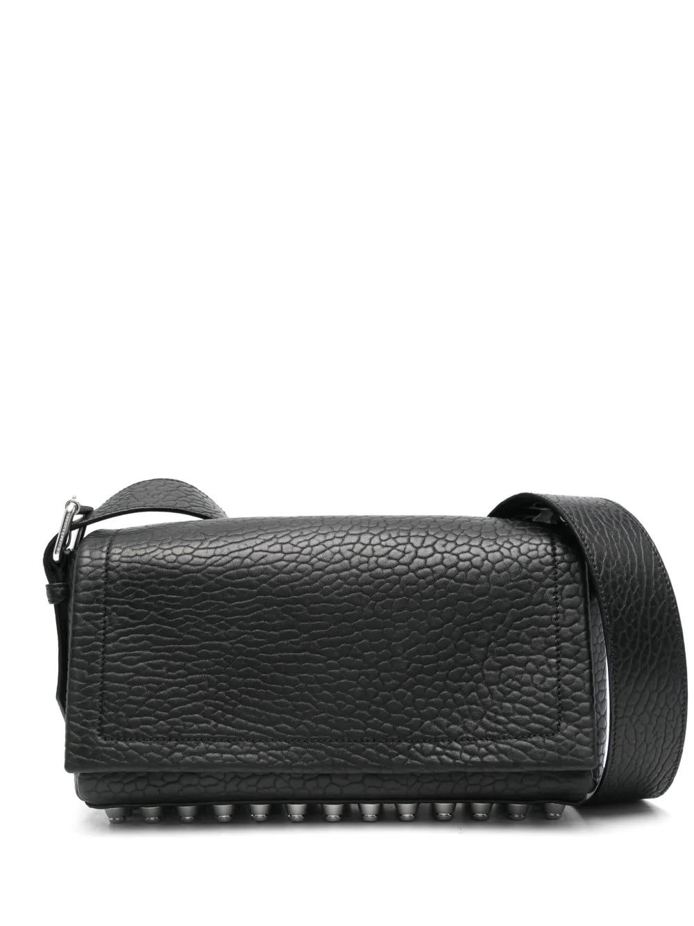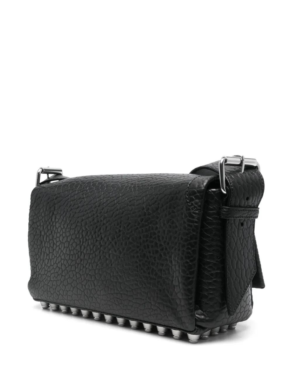 jet black lambskin grained texture silver-tone hardware stud embellishment metal feet adjustable shoulder strap foldover top with magnetic fastening main compartment internal logo stamp internal zip-fastening pocket full lining