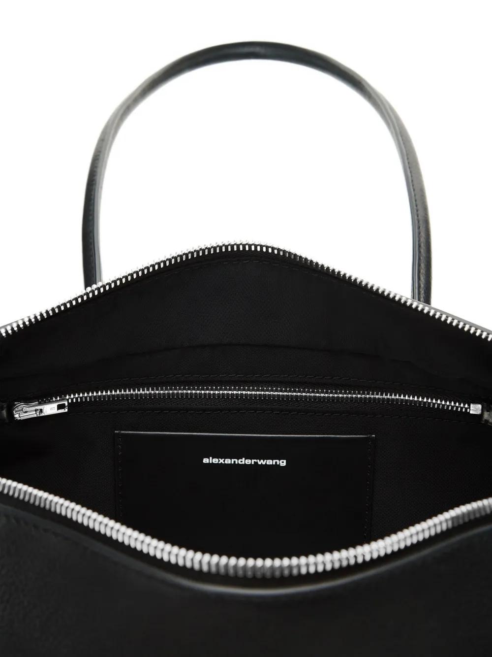 black leather construction top handles padlock fastening zip fastening stud embellishment