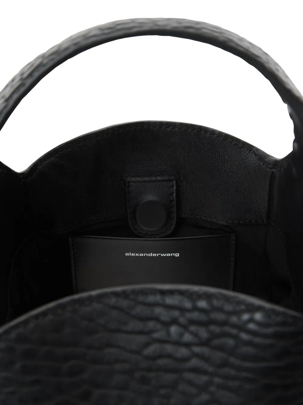 black lambskin grained texture magnetic fastening two top handles adjustable detachable shoulder strap silver-tone stud embellishment main compartment internal logo stamp internal patch pocket