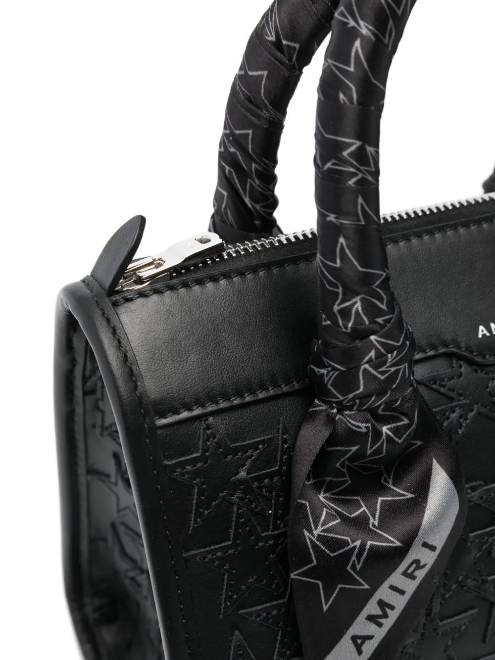 black calf leather smooth grain all-over star patch detail star print with logo print embellishment at the handles logo stamp to the front logo-engraved silver-tone hardware internal logo patch top zip fastening scarf-wrapped top handles adjustable detachable shoulder strap metal feet main compartment internal patch pocket leather lining