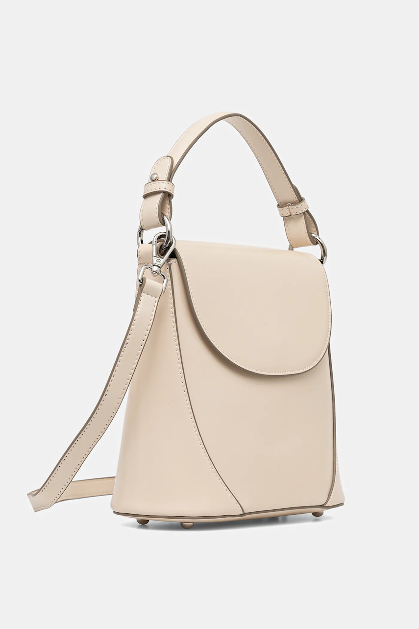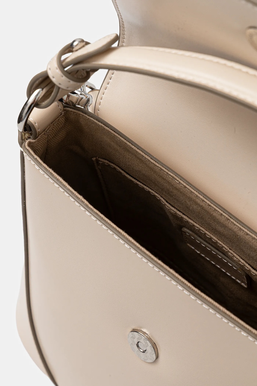 - Zapięcie na magnes. - Posiada przegrodę na kartę. - Posiada odpinany uchwyt i odpinany pasek z regulacją. - Nie mieści formatu A4. - Głębokość: 10 cm. - Wysokość: 22 cm. - Szerokość u podstawy: 23 cm.