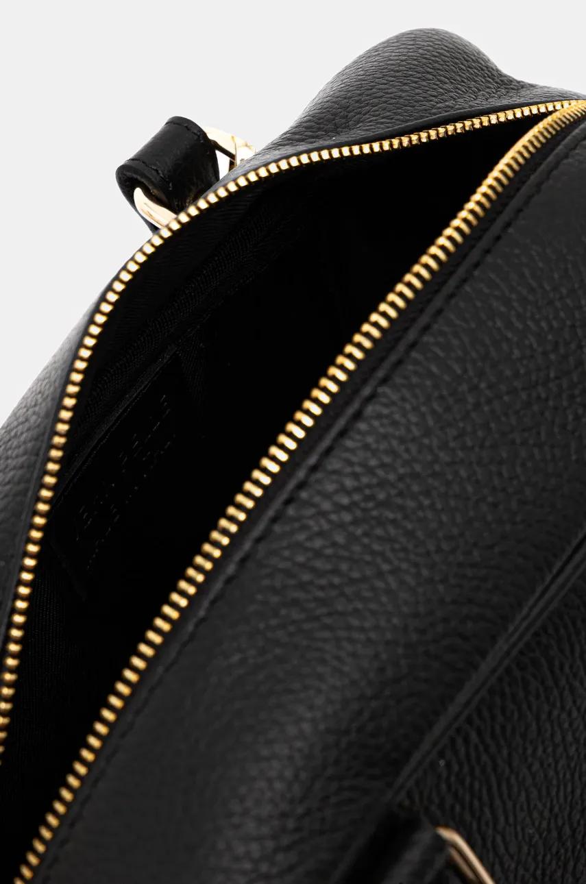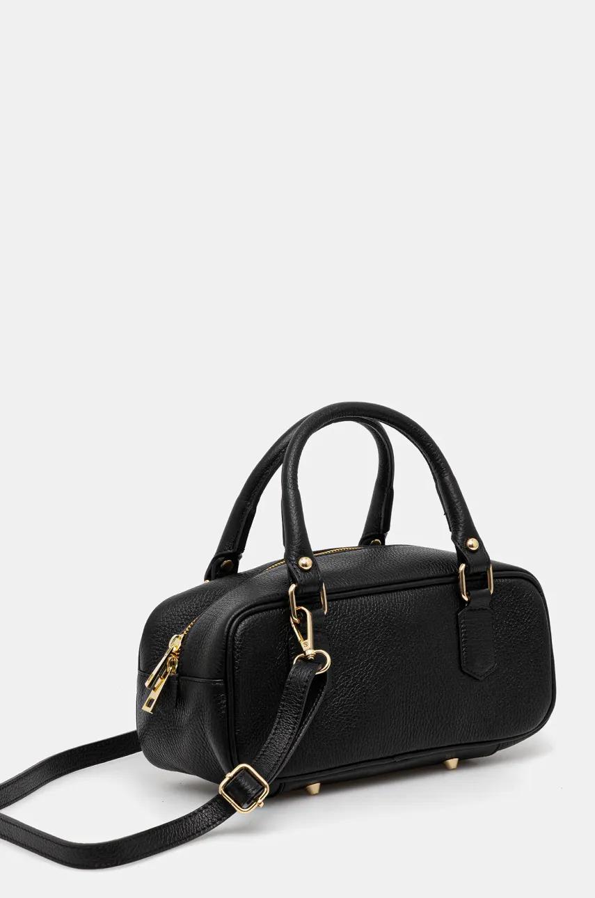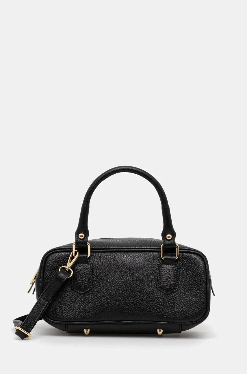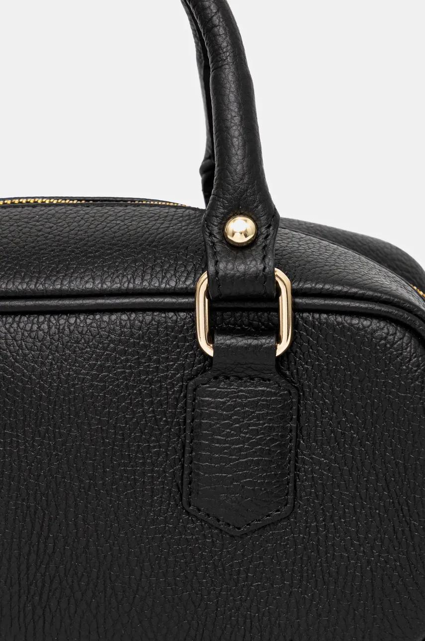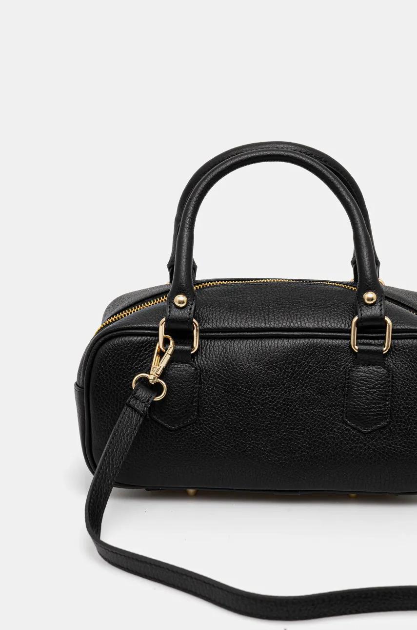 - Zapięcie na suwak. - Model z podszewką. - Wewnętrzna, wsuwana kieszeń, która ułatwia bezpieczne przechowywanie telefonu lub innych drobiazgów. - Model wyposażony w metalowe nóżki, które zabezpieczają spód torebki. - Torebka do noszenia w ręku lub na ramieniu. - Posiada uchwyty i odpinany pasek z regulacją. - Nie mieści formatu A4. - Dołączony tekstylny worek zabezpiecza produkt przed kurzem. - Głębokość: 11,5 cm. - Wysokość: 12 cm. - Szerokość u podstawy: 27,5 cm.