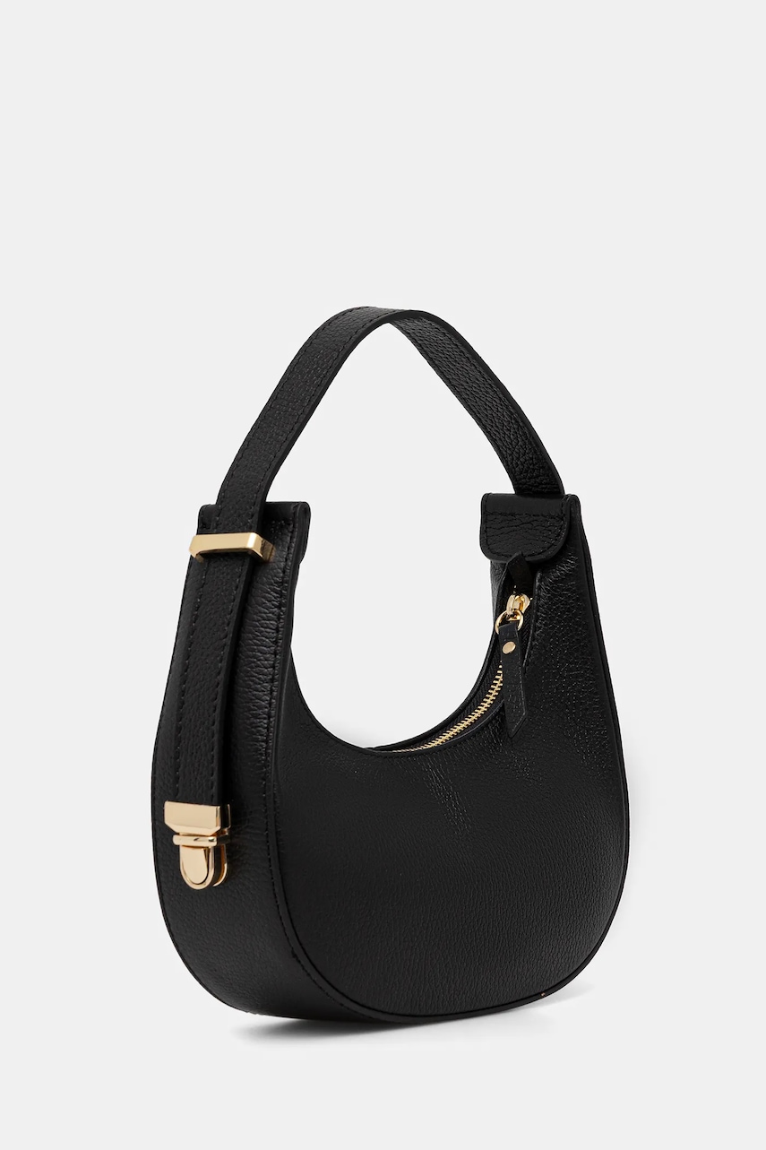 - Komora zapinana na suwak. - Kieszonka wewnętrzna zapinana na suwak. - Model z podszewką. - Nie mieści formatu A4. - Posiada regulowany uchwyt. - Usztywnione dno torebki pozwala zachować kształt produktu przez długi czas. - Dołączony tekstylny worek zabezpiecza produkt przed kurzem. - Głębokość: 7 cm. - Wysokość: 11,5 cm. - Szerokość u podstawy: 22 cm. - Maksymalna długość uchwytu: 48 cm. - Minimalna długość uchwytu: 29 cm.