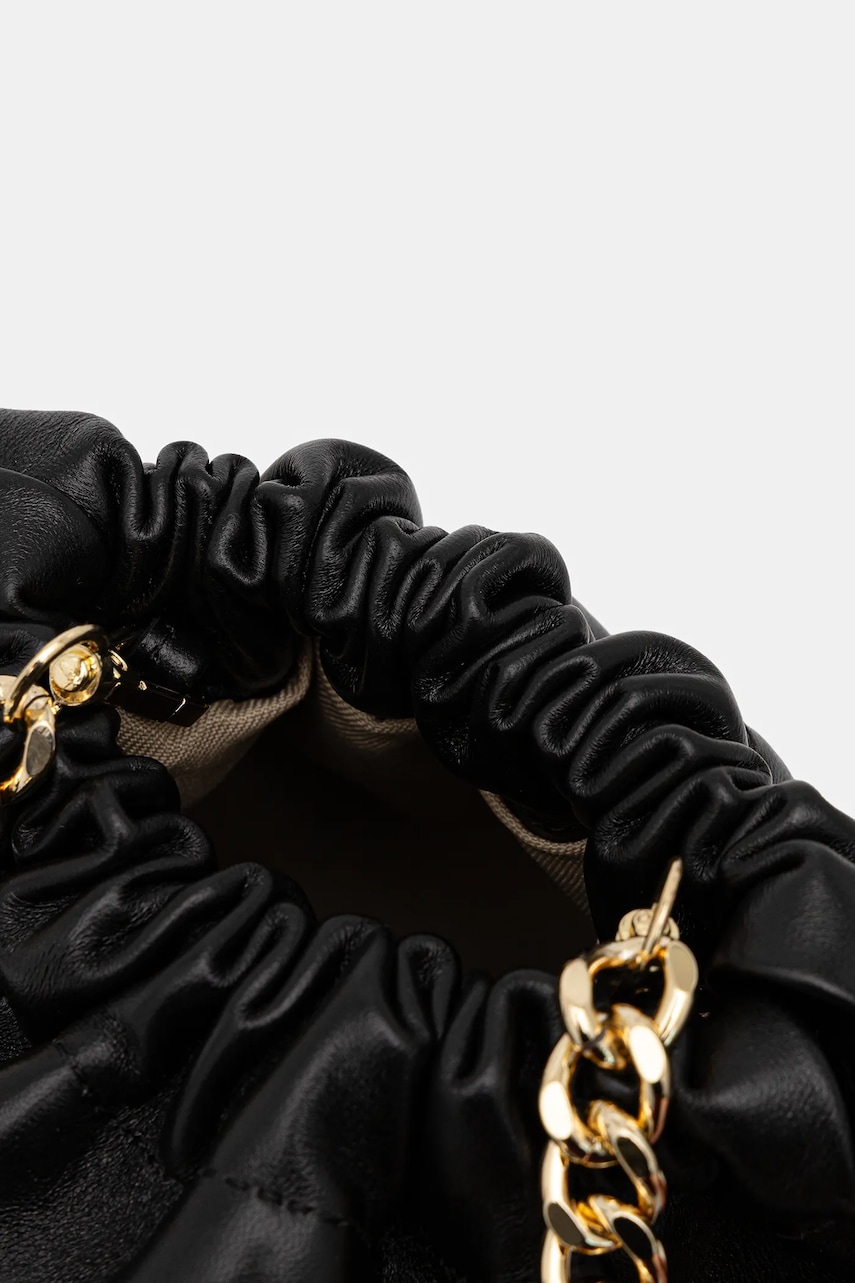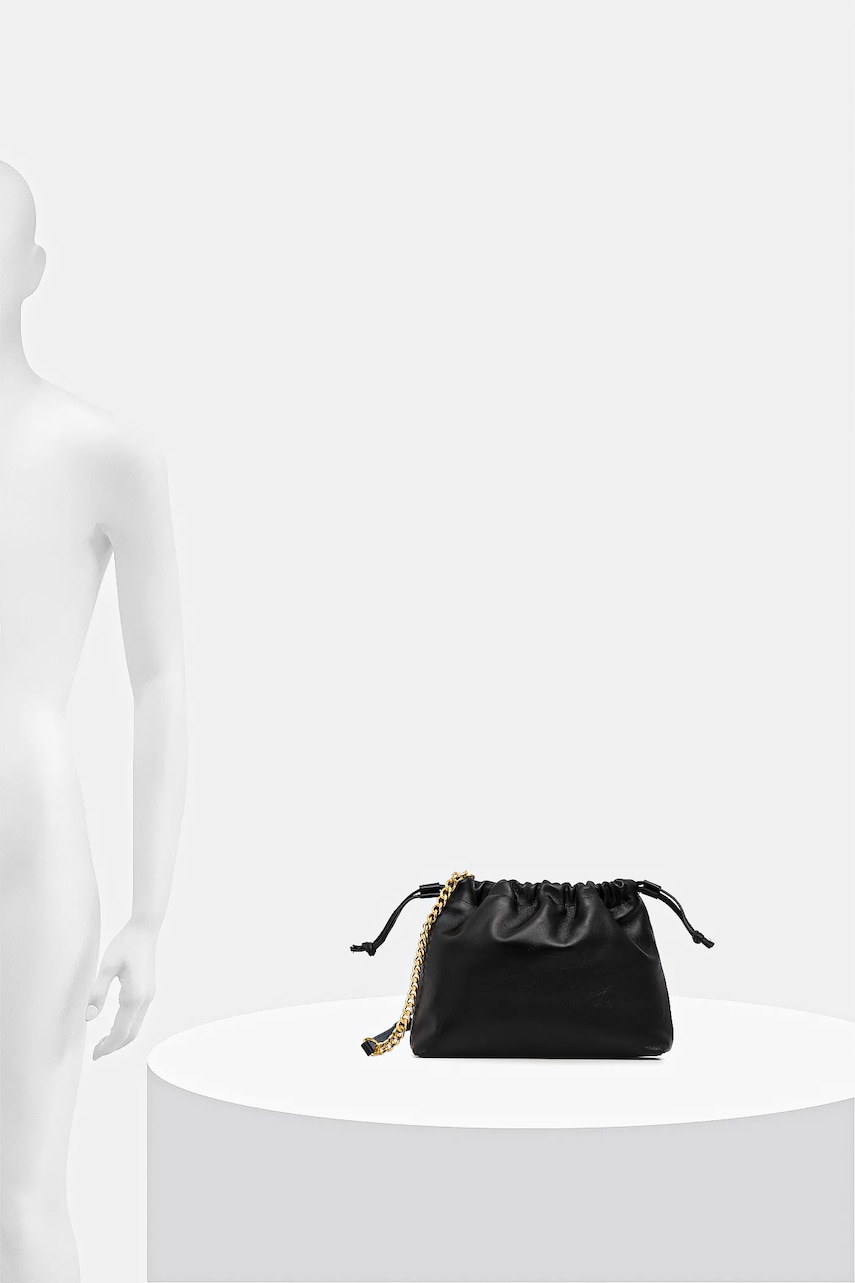- Komora ściągana troczkami. - Kieszonka wewnętrzna zapinana na suwak pozwala na bezpieczne przechowywanie drobiazgów. - Usztywnione dno torebki pozwala zachować kształt produktu przez długi czas. - Torebka do noszenia w ręku lub na ramieniu. - Odpinany pasek bez regulacji. - Nie mieści formatu A4. - Model z podszewką. - Dołączony tekstylny worek zabezpiecza produkt przed kurzem. - Długość paska: 115 cm. - Głębokość: 6,5 cm. - Wysokość: 23 cm. - Szerokość u podstawy: 28 cm.