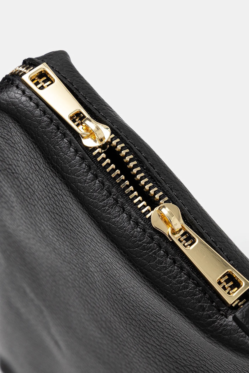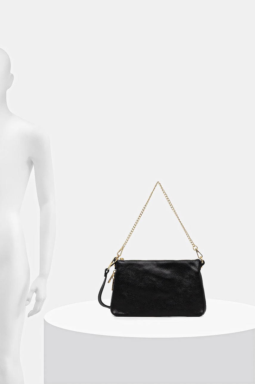 - Nie mieści formatu A4. - Zapinana na suwak kieszonka wewnętrzna, która ułatwia bezpieczne przechowywanie telefonu lub innych drobiazgów. - Model z podszewką. - Regulacja głębokości na suwak. - Posiada odpinany uchwyt i odpinany pasek z regulacją. - Długość uchwytu: 48 cm. - Dołączony tekstylny worek zabezpiecza produkt przed kurzem. - Długość minimalna paska: 68 cm. - Długość maksymalna paska: 123 cm. - Głębokość: 7 cm. - Wysokość: 16 cm. - Szerokość u podstawy: 25 cm.