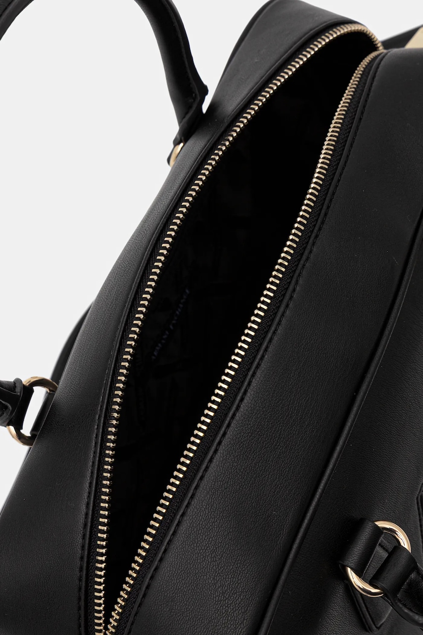 - Komora zapinana na suwak. - Posiada dwie kieszenie wewenętrzne: jedna wsuwana, druga zapinana na suwak. - Posiada uchwyty i odpinany pasek z regulacją. - Dołączony tekstylny worek zabezpiecza produkt przed kurzem. - Nie mieści formatu A4. - Model z podszewką. - Głębokość: 11 cm. - Wysokość: 17,5 cm. - Szerokość u podstawy: 30,5 cm. - Długość uchwytów: 43 cm. - Długość minimalna paska: 118 cm. - Długość maksymalna paska: 138 cm.
