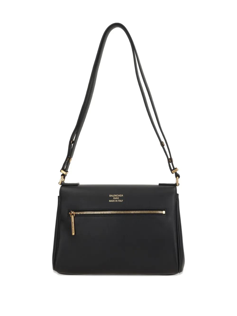 black calfskin gold-tone hardware shoulder strap zip pocket flap closure