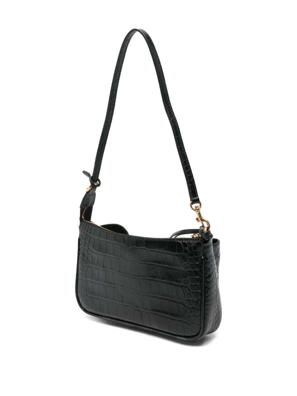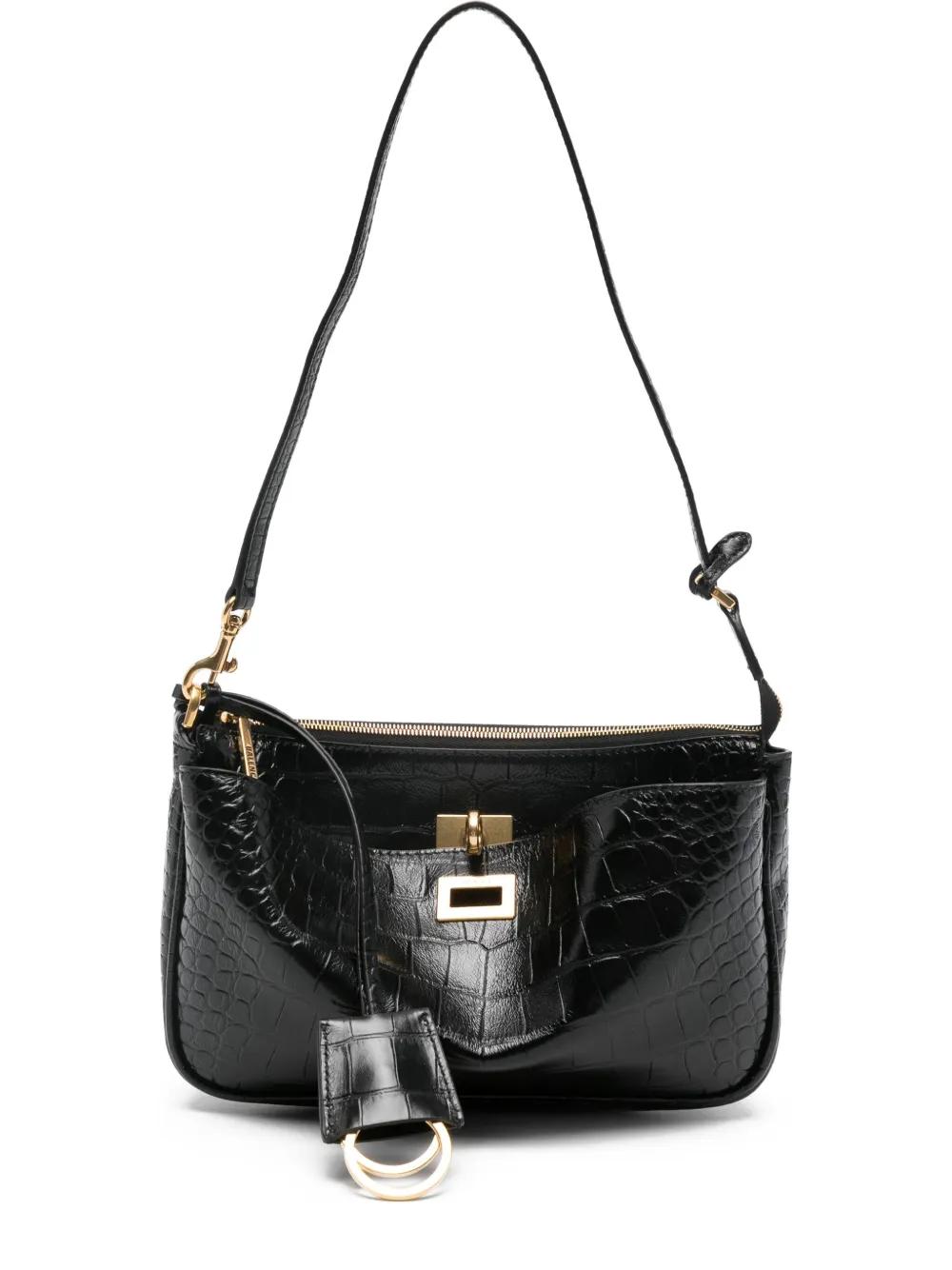 black embossed crocodile effect detachable shoulder strap gold-tone hardware top zip fastening front flap closure