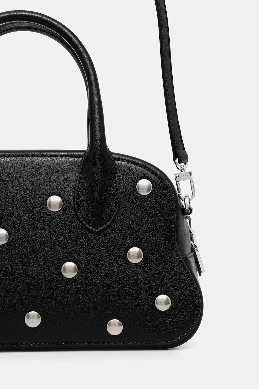 - Zapięcie na suwak. - Wewnętrzna przegroda na kartę. - Model bez podszewki. - Nie mieści formatu A4. - Posiada uchwyty i odpinany pasek z regulacją. - Dołączony tekstylny worek zabezpiecza produkt przed kurzem. - Głębokość: 10 cm. - Wysokość: 15 cm. - Szerokość u podstawy: 26,5 cm.