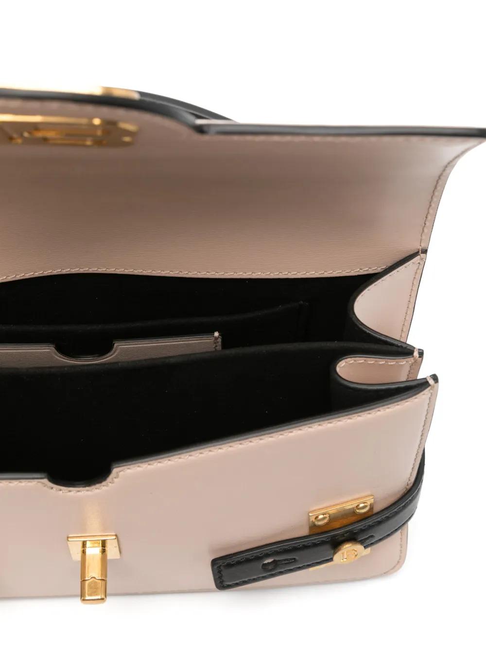 light beige twist-lock fastening single flat top handle adjustable detachable shoulder strap This piece comes complete with a protective dust bag.